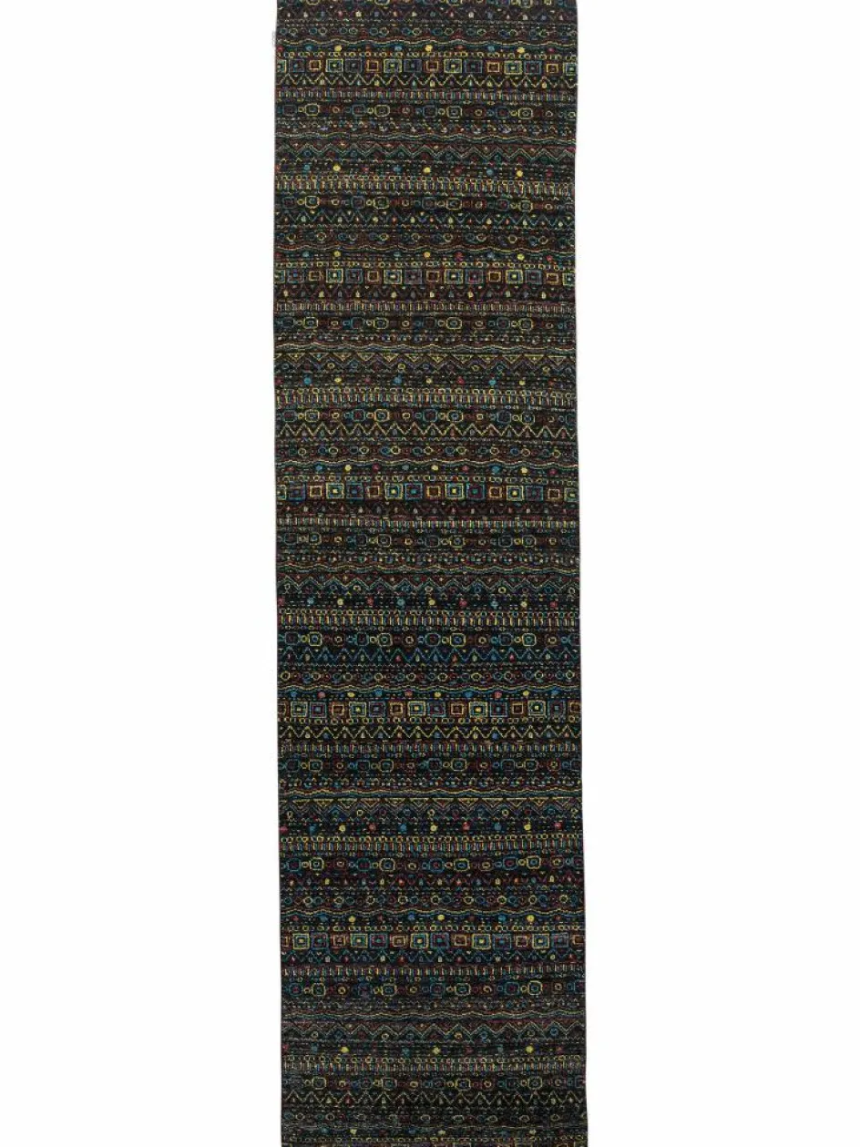 ist eine ungewöhnliche moderne Variation des traditionellen persichen Gabbehs. Er ist kürzer im Flor und feiner geknüpft. Es gibt zahllose Neukreationen in individuellen und einzigartigen Farben und Mustern.| Gesamthöhe: | ca. 10 mm |