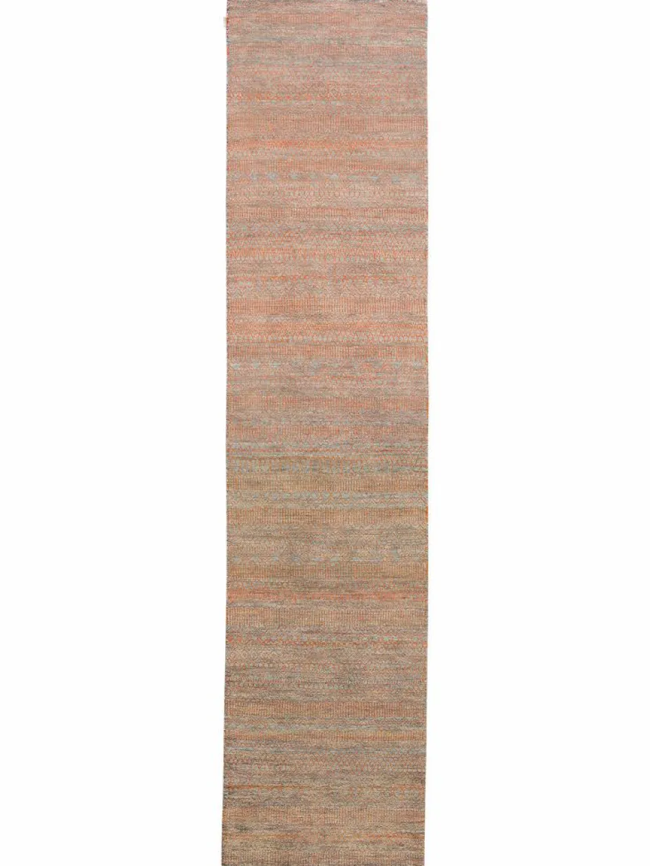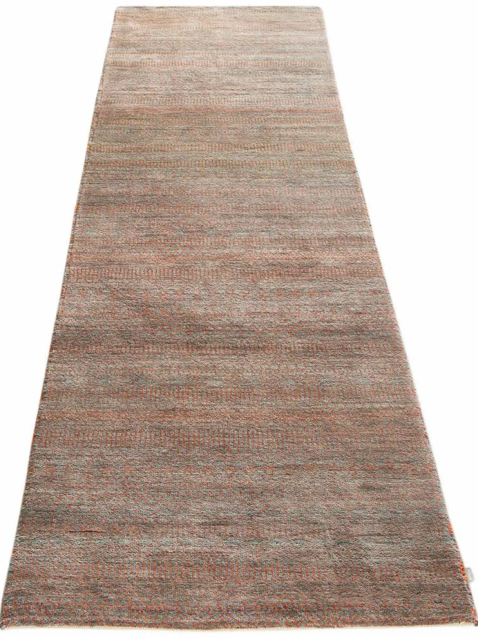 ist eine ungewöhnliche moderne Variation des traditionellen persichen Gabbehs. Er ist kürzer im Flor und feiner geknüpft. Es gibt zahllose Neukreationen in individuellen und einzigartigen Farben und Mustern.| Gesamthöhe: | ca. 10 mm |