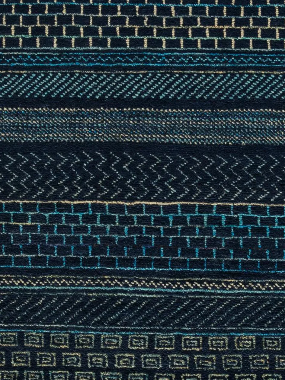 ist eine ungewöhnliche moderne Variation des traditionellen persichen Gabbehs. Er ist kürzer im Flor und feiner geknüpft. Es gibt zahllose Neukreationen in individuellen und einzigartigen Farben und Mustern.| Gesamthöhe: | ca. 10 mm |
