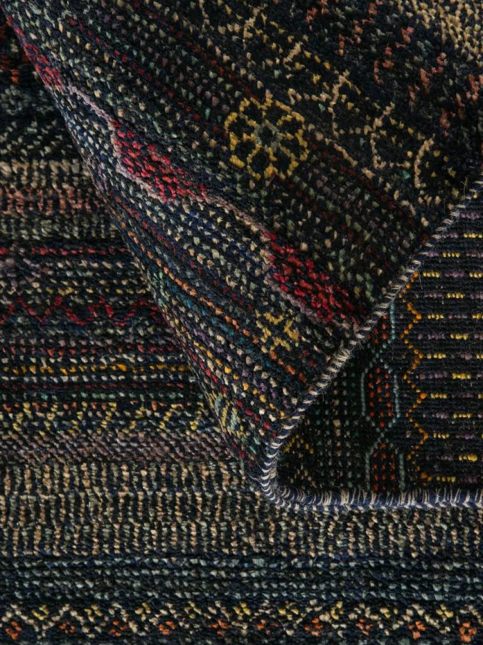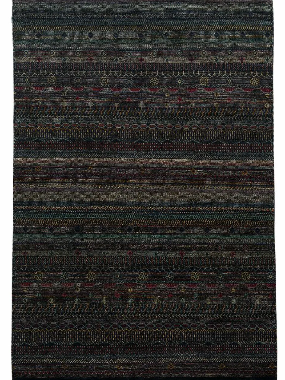 ist eine ungewöhnliche moderne Variation des traditionellen persichen Gabbehs. Er ist kürzer im Flor und feiner geknüpft. Es gibt zahllose Neukreationen in individuellen und einzigartigen Farben und Mustern.| Gesamthöhe: | ca. 10 mm |