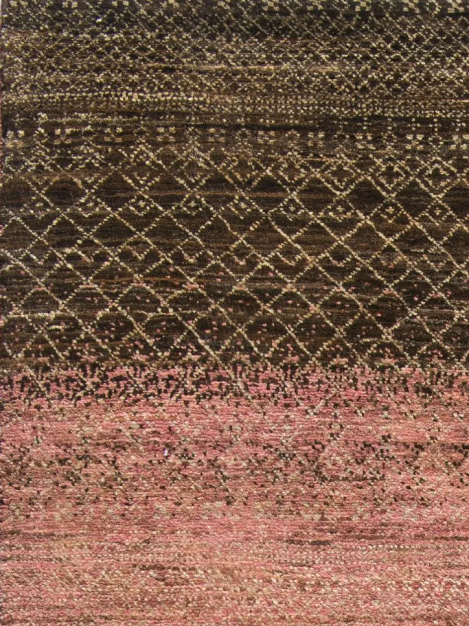 ist eine ungewöhnliche moderne Variation des traditionellen persichen Gabbehs. Er ist kürzer im Flor und feiner geknüpft. Es gibt zahllose Neukreationen in individuellen und einzigartigen Farben und Mustern.| Gesamthöhe: | ca. 10 mm |