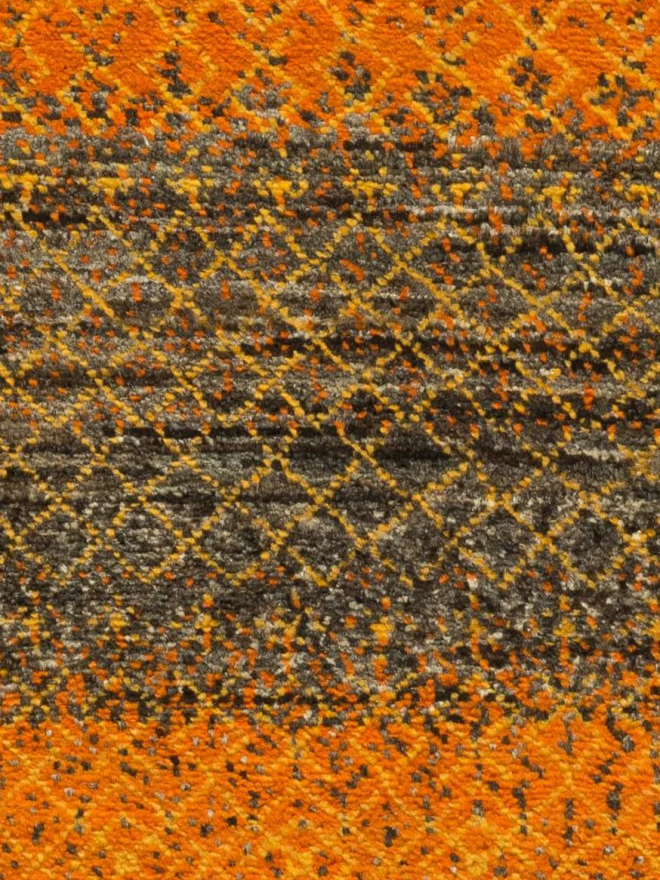 ist eine ungewöhnliche moderne Variation des traditionellen persichen Gabbehs. Er ist kürzer im Flor und feiner geknüpft. Es gibt zahllose Neukreationen in individuellen und einzigartigen Farben und Mustern.| Gesamthöhe: | ca. 10 mm |