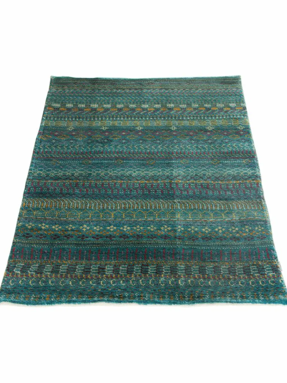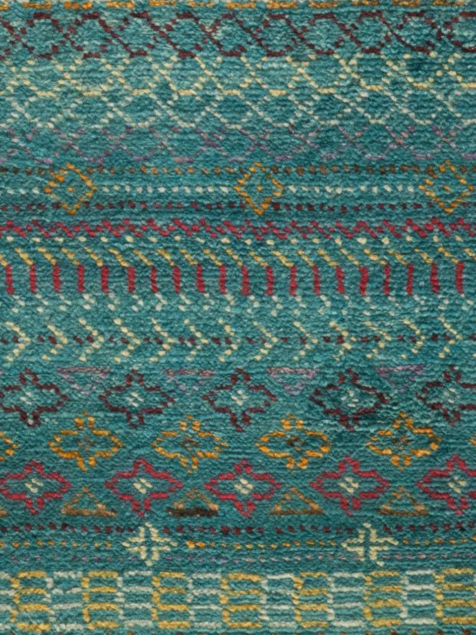 ist eine ungewöhnliche moderne Variation des traditionellen persichen Gabbehs. Er ist kürzer im Flor und feiner geknüpft. Es gibt zahllose Neukreationen in individuellen und einzigartigen Farben und Mustern.| Gesamthöhe: | ca. 10 mm |