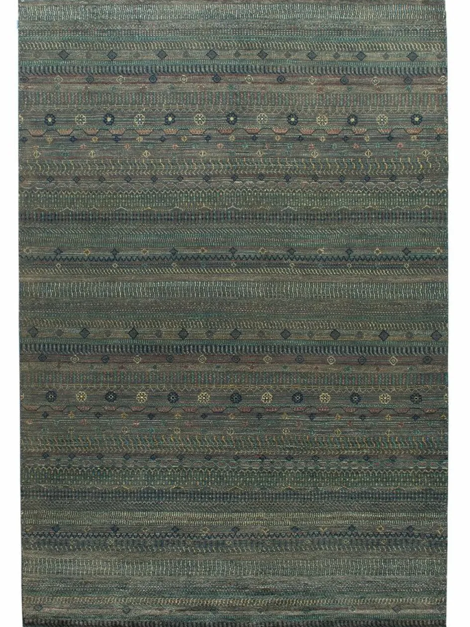 ist eine ungewöhnliche moderne Variation des traditionellen persichen Gabbehs. Er ist kürzer im Flor und feiner geknüpft. Es gibt zahllose Neukreationen in individuellen und einzigartigen Farben und Mustern.| Gesamthöhe: | ca. 7 mm |