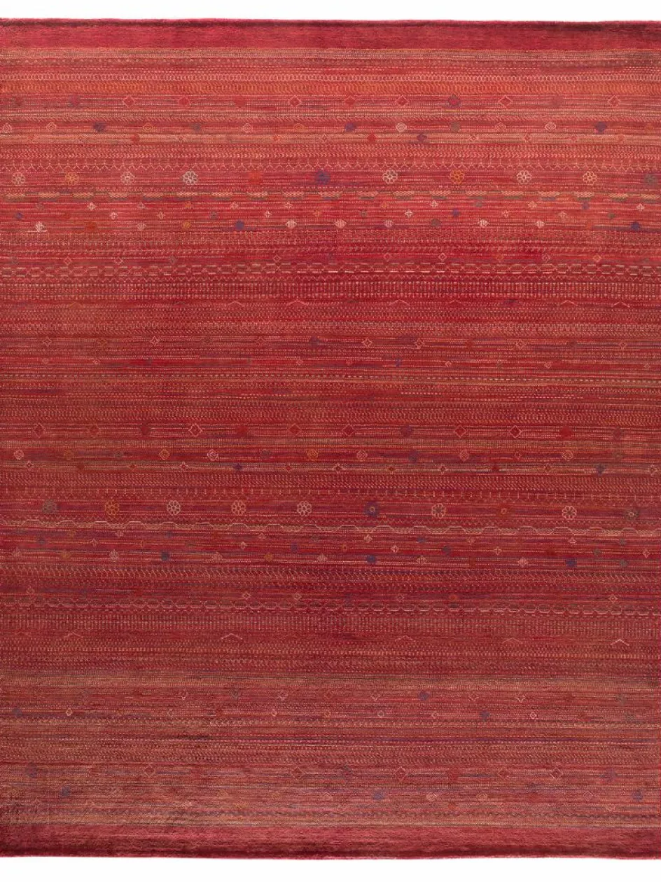 ist eine ungewöhnliche moderne Variation des traditionellen persichen Gabbehs. Er ist kürzer im Flor und feiner geknüpft. Es gibt zahllose Neukreationen in individuellen und einzigartigen Farben und Mustern.| Gesamthöhe: | ca. 7 mm |