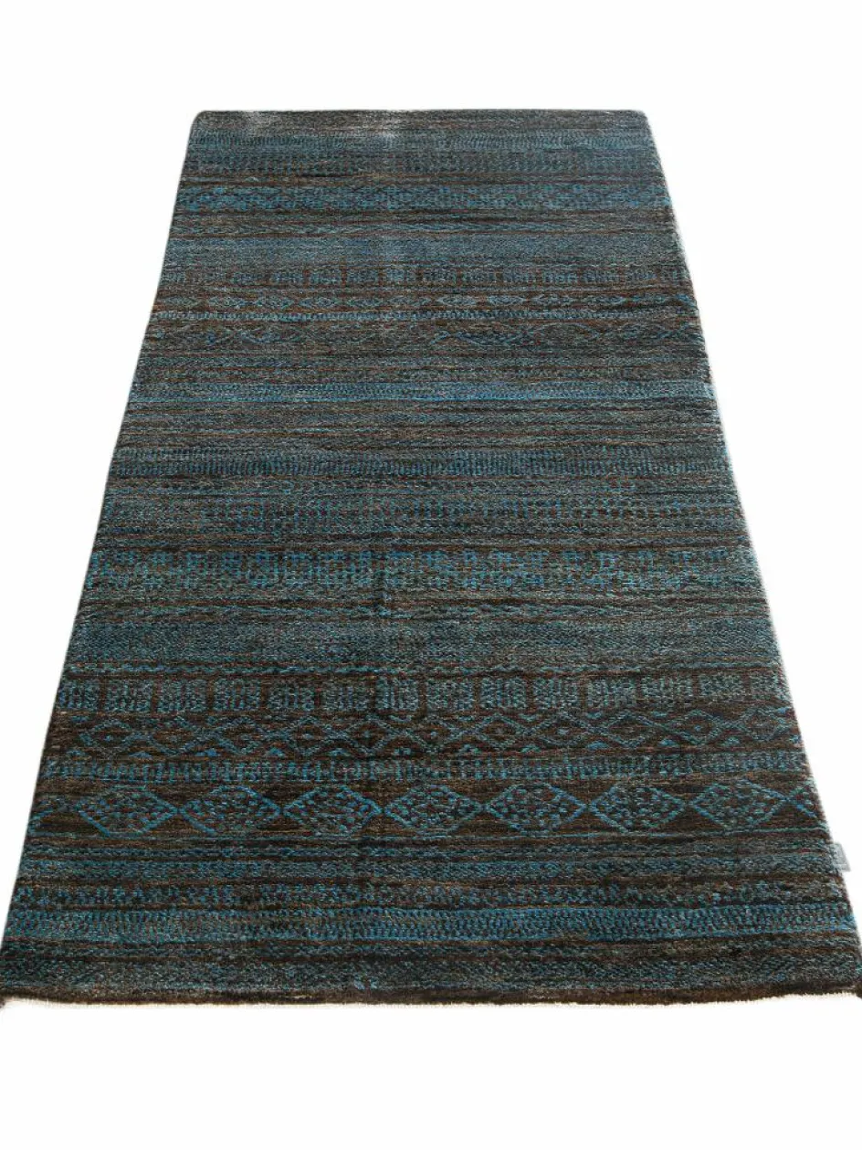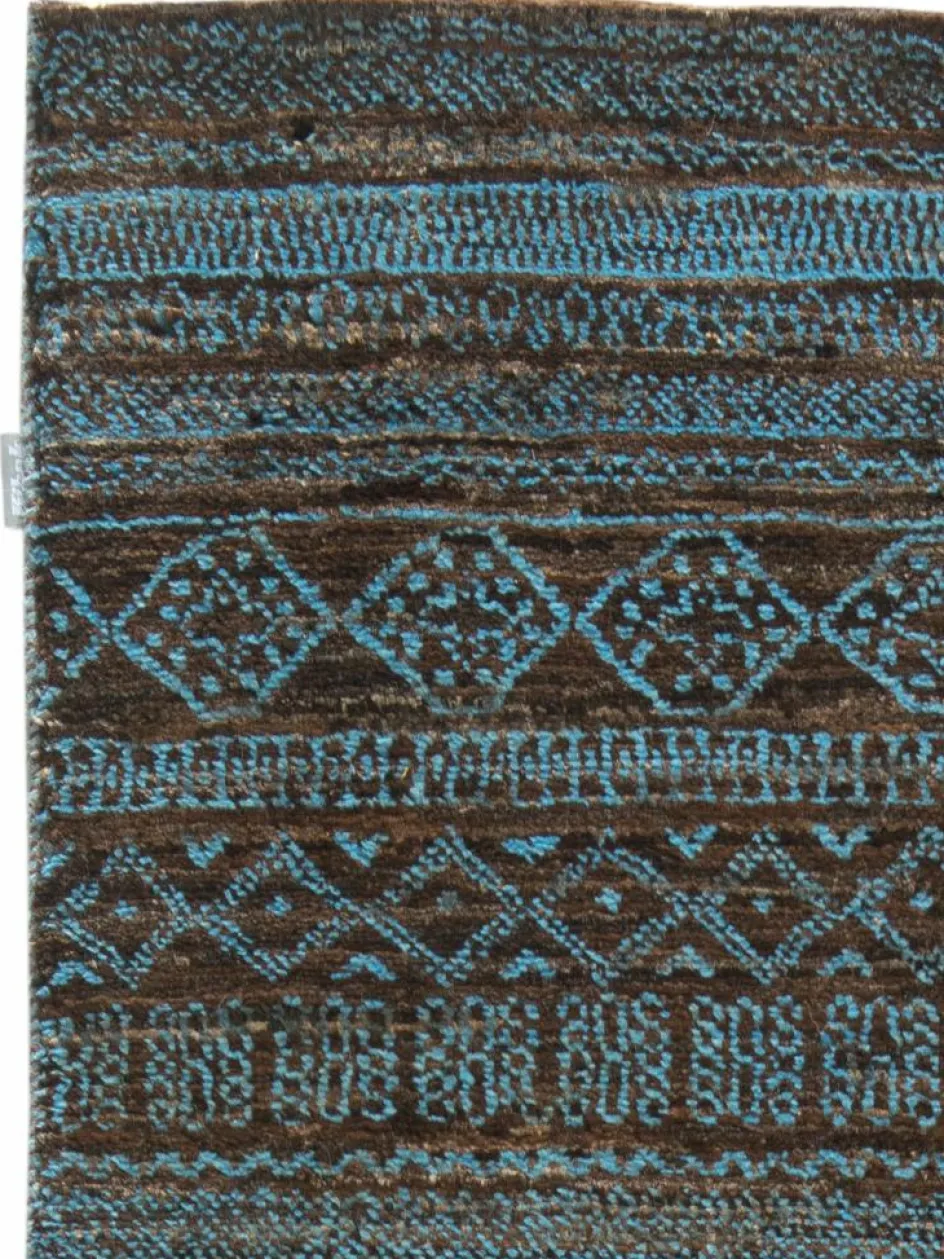 ist eine ungewöhnliche moderne Variation des traditionellen persichen Gabbehs. Er ist kürzer im Flor und feiner geknüpft. Es gibt zahllose Neukreationen in individuellen und einzigartigen Farben und Mustern.| Gesamthöhe: | ca. 10 mm |