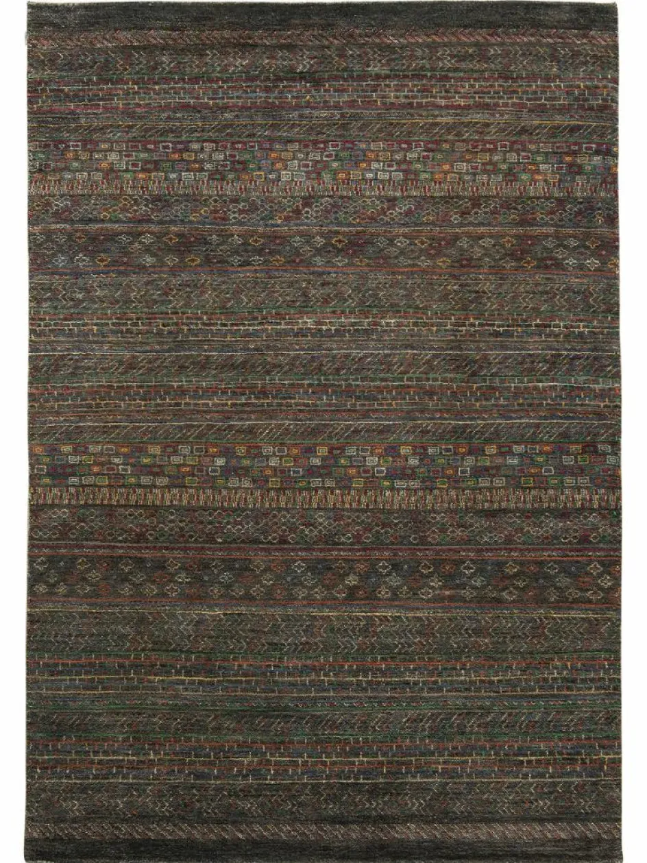 ist eine ungewöhnliche moderne Variation des traditionellen persichen Gabbehs. Er ist kürzer im Flor und feiner geknüpft. Es gibt zahllose Neukreationen in individuellen und einzigartigen Farben und Mustern.| Gesamthöhe: | ca. 7 mm |