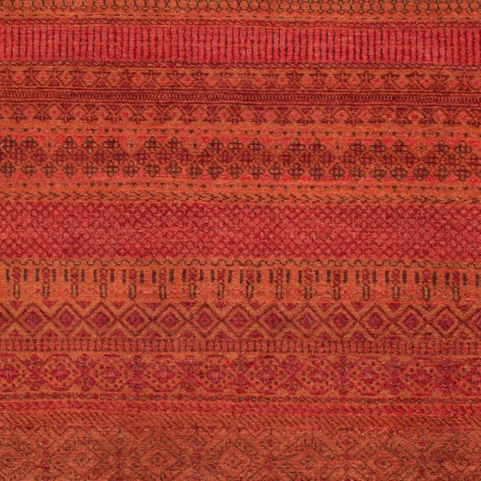 ist eine ungewöhnliche moderne Variation des traditionellen persichen Gabbehs. Er ist kürzer im Flor und feiner geknüpft. Es gibt zahllose Neukreationen in individuellen und einzigartigen Farben und Mustern.| Gesamthöhe: | ca. 12 mm |
