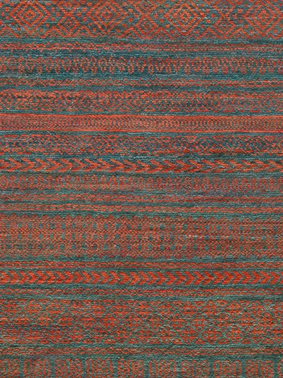 ist eine ungewöhnliche moderne Variation des traditionellen persichen Gabbehs. Er ist kürzer im Flor und feiner geknüpft. Es gibt zahllose Neukreationen in individuellen und einzigartigen Farben und Mustern.| Gesamthöhe: | ca. 10 mm |