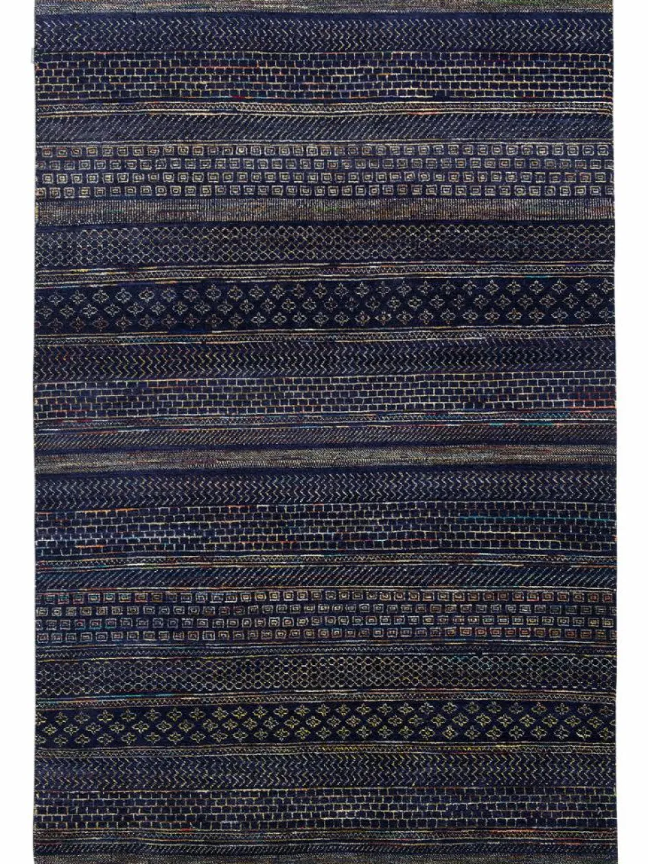 ist eine ungewöhnliche moderne Variation des traditionellen persichen Gabbehs. Er ist kürzer im Flor und feiner geknüpft. Es gibt zahllose Neukreationen in individuellen und einzigartigen Farben und Mustern. – Fein geknüpft inDouble-Knot