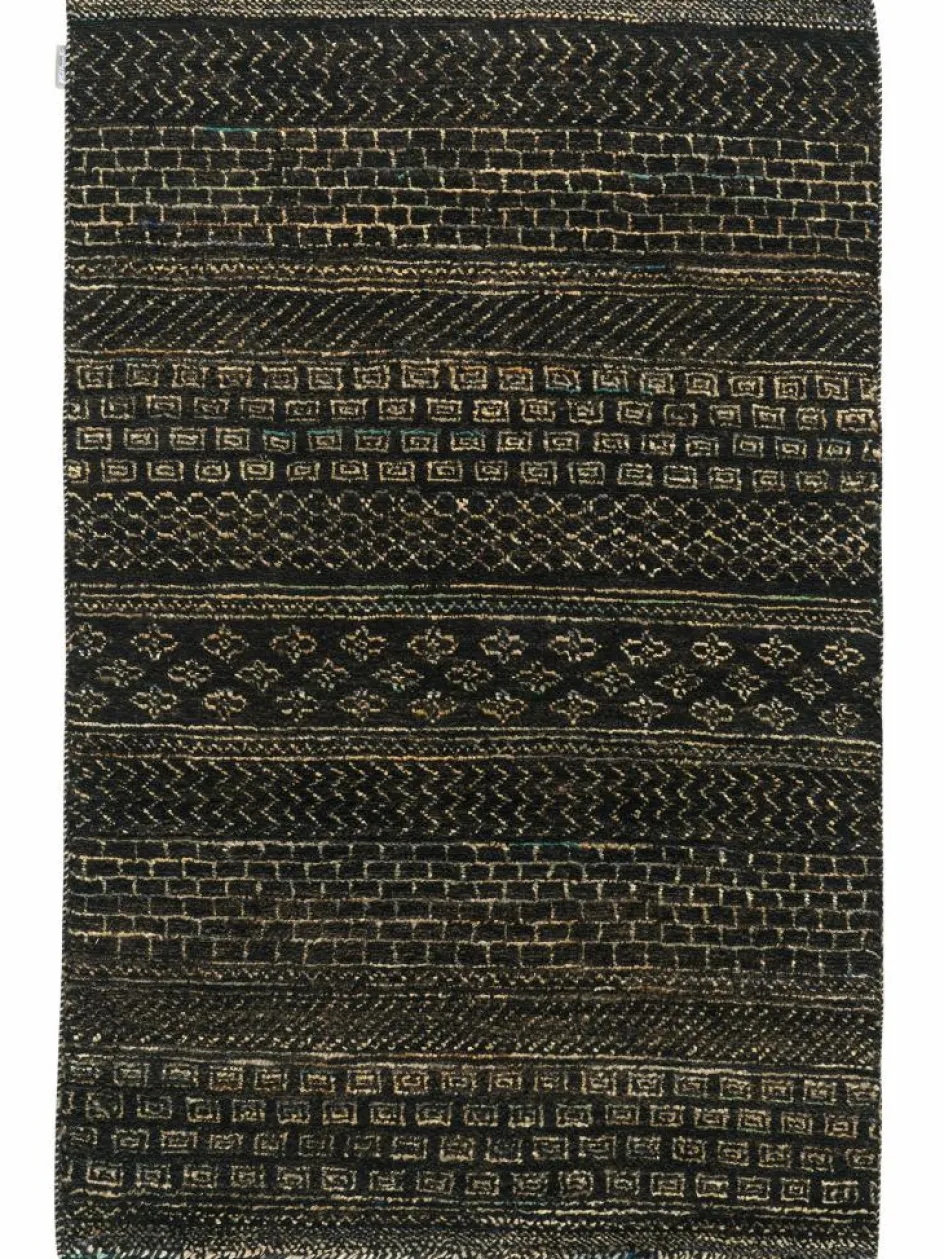 ist eine ungewöhnliche moderne Variation des traditionellen persichen Gabbehs. Er ist kürzer im Flor und feiner geknüpft. Es gibt zahllose Neukreationen in individuellen und einzigartigen Farben und Mustern.| Gesamthöhe: | ca. 8 mm |