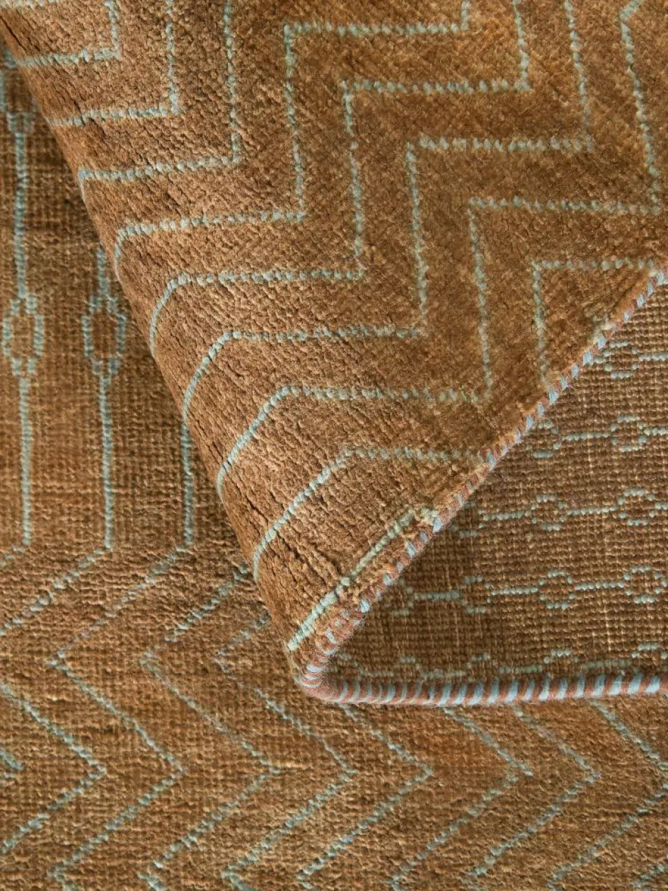 ist eine ungewöhnliche moderne Variation des traditionellen persichen Gabbehs. Er ist kürzer im Flor und feiner geknüpft. Es gibt zahllose Neukreationen in individuellen und einzigartigen Farben und Mustern.| Gesamthöhe: | ca. 10 mm |