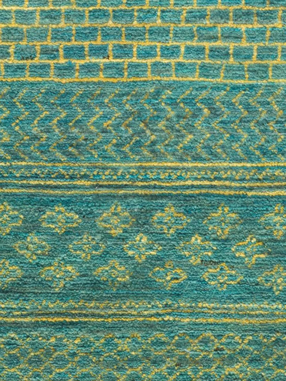 ist eine ungewöhnliche moderne Variation des traditionellen persichen Gabbehs. Er ist kürzer im Flor und feiner geknüpft. Es gibt zahllose Neukreationen in individuellen und einzigartigen Farben und Mustern.| Gesamthöhe: | ca. 10 mm |