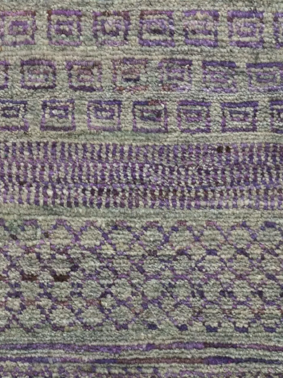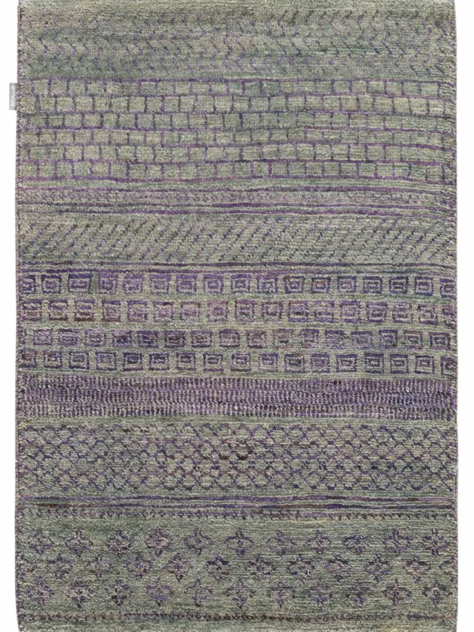 ist eine ungewöhnliche moderne Variation des traditionellen persichen Gabbehs. Er ist kürzer im Flor und feiner geknüpft. Es gibt zahllose Neukreationen in individuellen und einzigartigen Farben und Mustern.| Gesamthöhe: | ca. 10 mm |