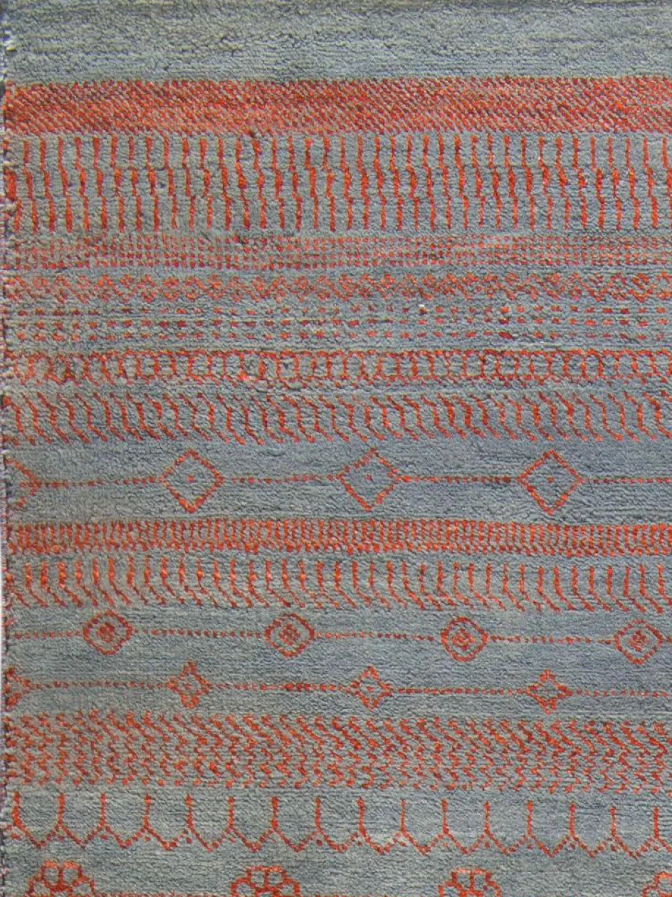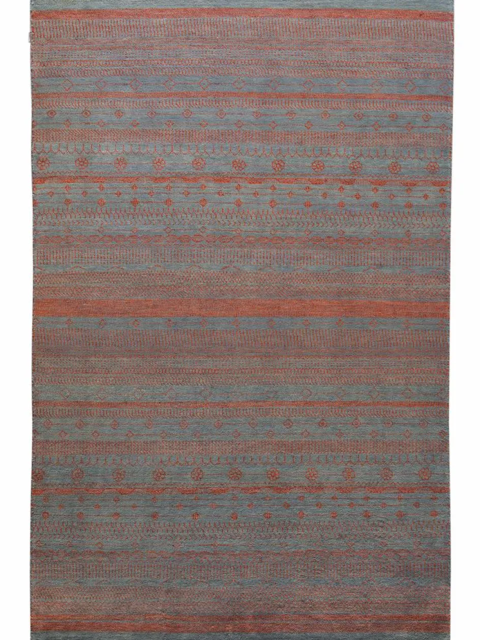 ist eine ungewöhnliche moderne Variation des traditionellen persichen Gabbehs. Er ist kürzer im Flor und feiner geknüpft. Es gibt zahllose Neukreationen in individuellen und einzigartigen Farben und Mustern.| Gesamthöhe: | ca. 10 mm |