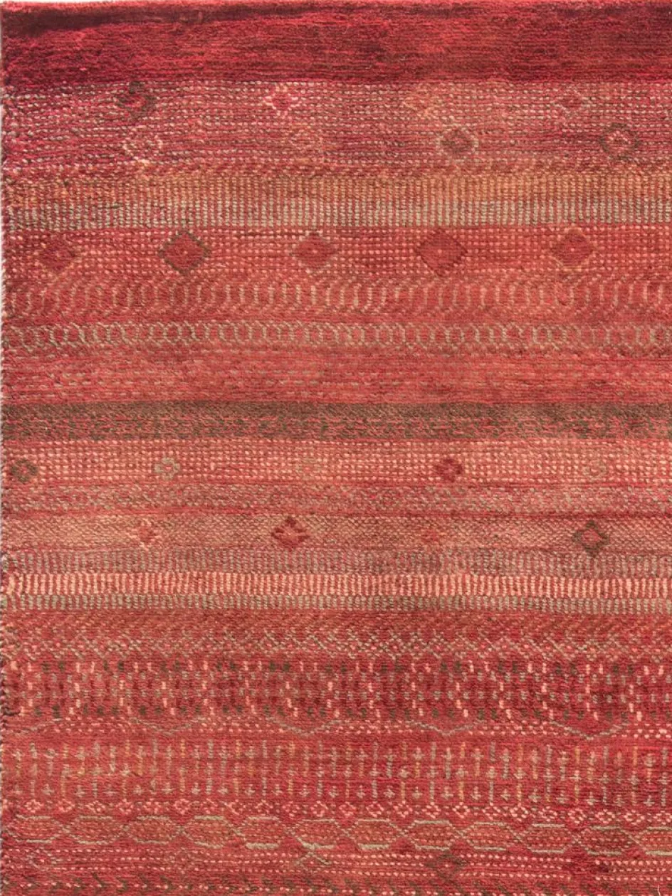 ist eine ungewöhnliche moderne Variation des traditionellen persichen Gabbehs. Er ist kürzer im Flor und feiner geknüpft. Es gibt zahllose Neukreationen in individuellen und einzigartigen Farben und Mustern.| Gesamthöhe: | ca. 7 mm |