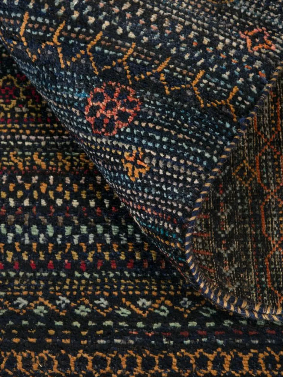 ist eine ungewöhnliche moderne Variation des traditionellen persichen Gabbehs. Er ist kürzer im Flor und feiner geknüpft. Es gibt zahllose Neukreationen in individuellen und einzigartigen Farben und Mustern.| Größe: | ca. 252 x 363 cm |