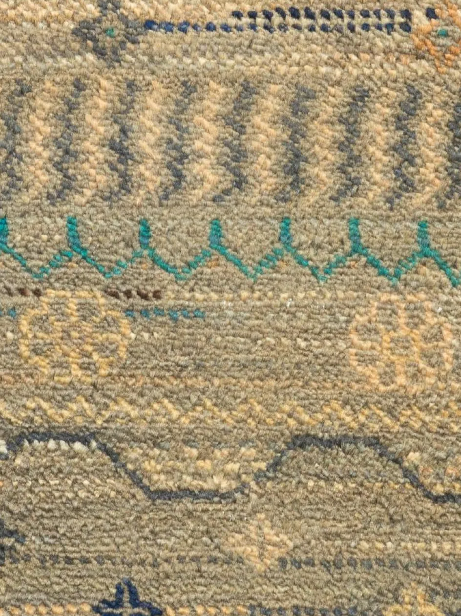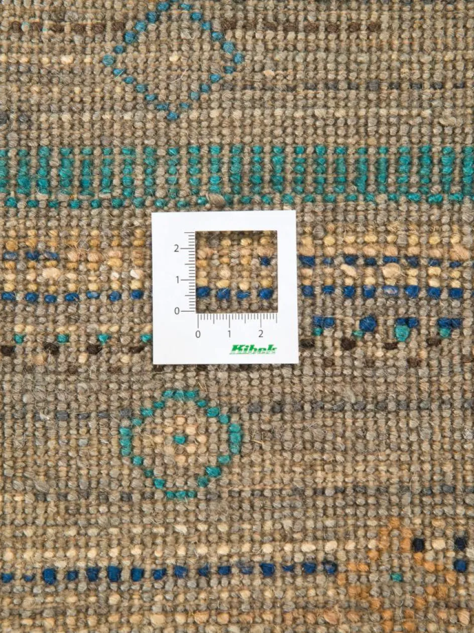 ist eine ungewöhnliche moderne Variation des traditionellen persichen Gabbehs. Er ist kürzer im Flor und feiner geknüpft. Es gibt zahllose Neukreationen in individuellen und einzigartigen Farben und Mustern.| Gesamthöhe: | ca. 7 mm |
