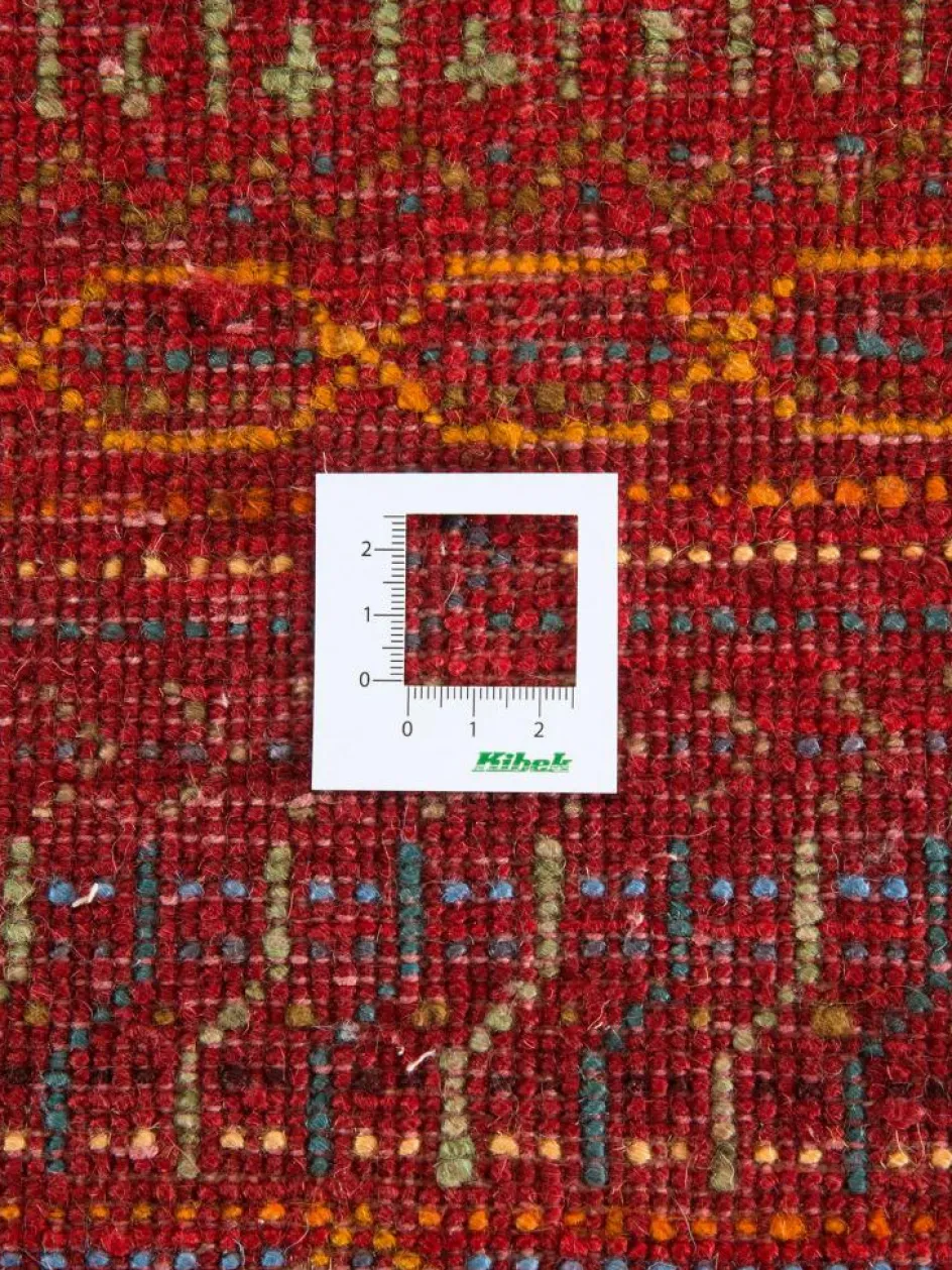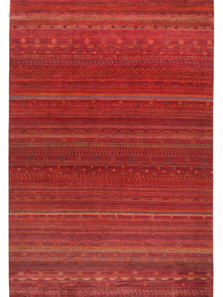 ist eine ungewöhnliche moderne Variation des traditionellen persichen Gabbehs. Er ist kürzer im Flor und feiner geknüpft. Es gibt zahllose Neukreationen in individuellen und einzigartigen Farben und Mustern.| Gesamthöhe: | ca. 10 mm |