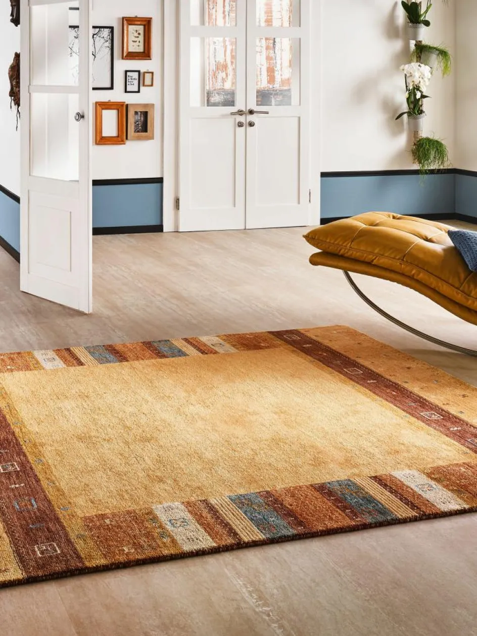 -Teppich ist handgearbeitet in schwerer, behaglicher Schurwollqualität.| Art: | Gabbeh |