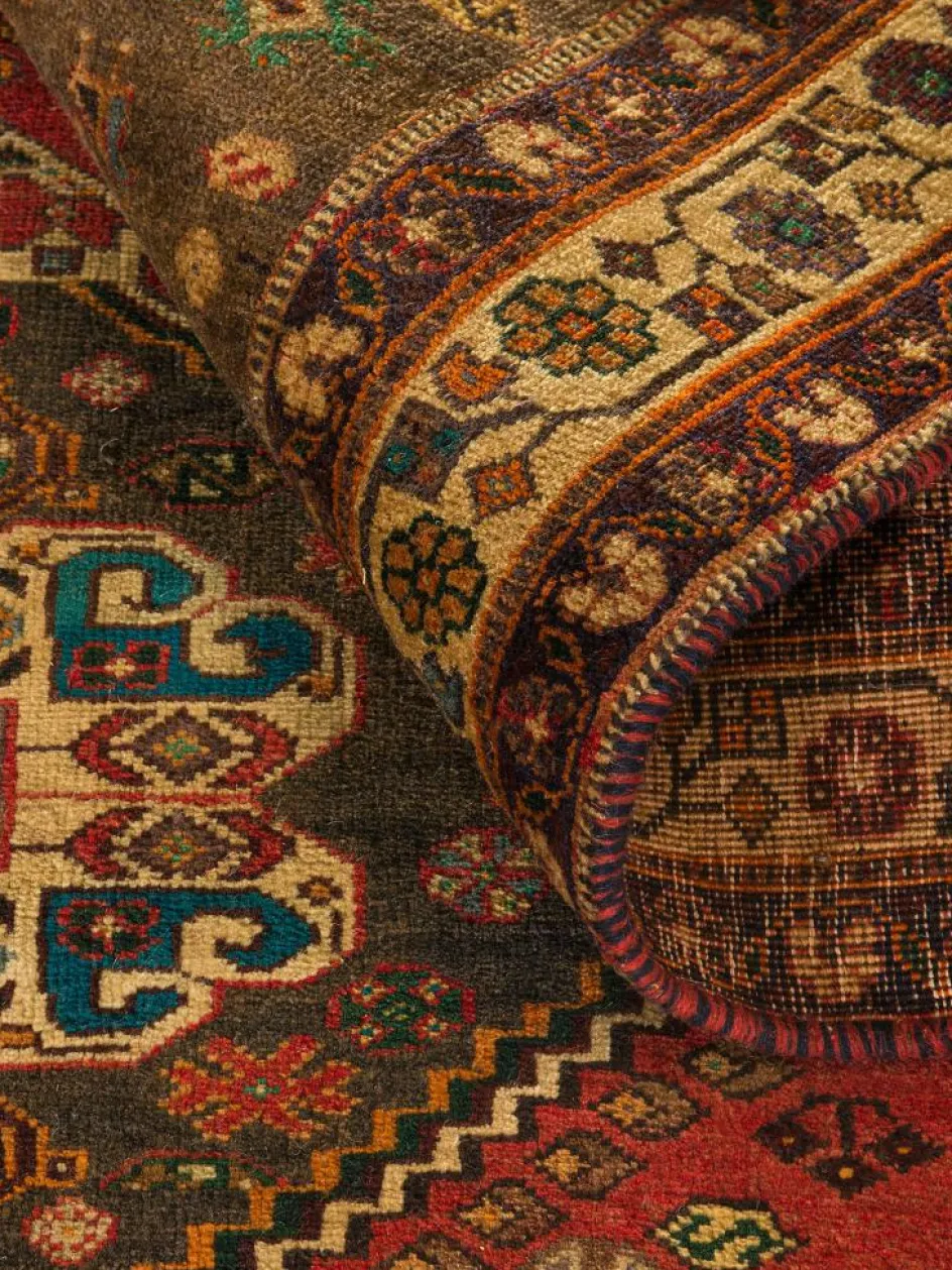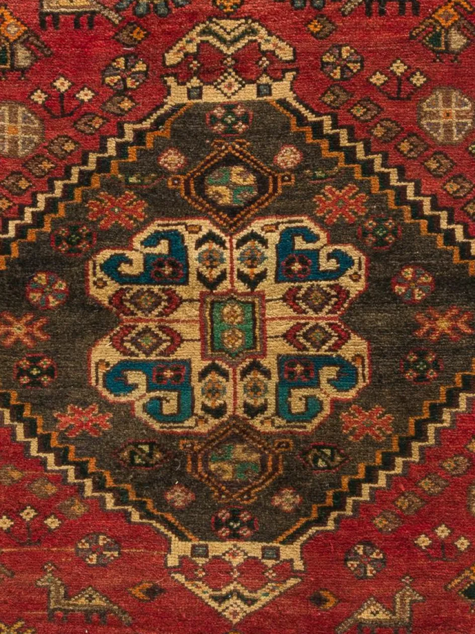 -Teppiche sind die Könige unter den Nomadenteppichen. Knüpfvorlagen gibt es bei den Ghashgai nicht. Die Knüpferinnen haben ein sehr gutes Gedächtnis. Sie brauchen ein interessantes Motiv nur einmal zu sehen oder erzählt zu bekommen. Alle Teppiche werden aus dem Gedächtnis geknüpft und sind daher nie gleich. Die Ornamente werden immer anders angeordnet oder die Farben unterscheiden sich. DasGrundgewebe