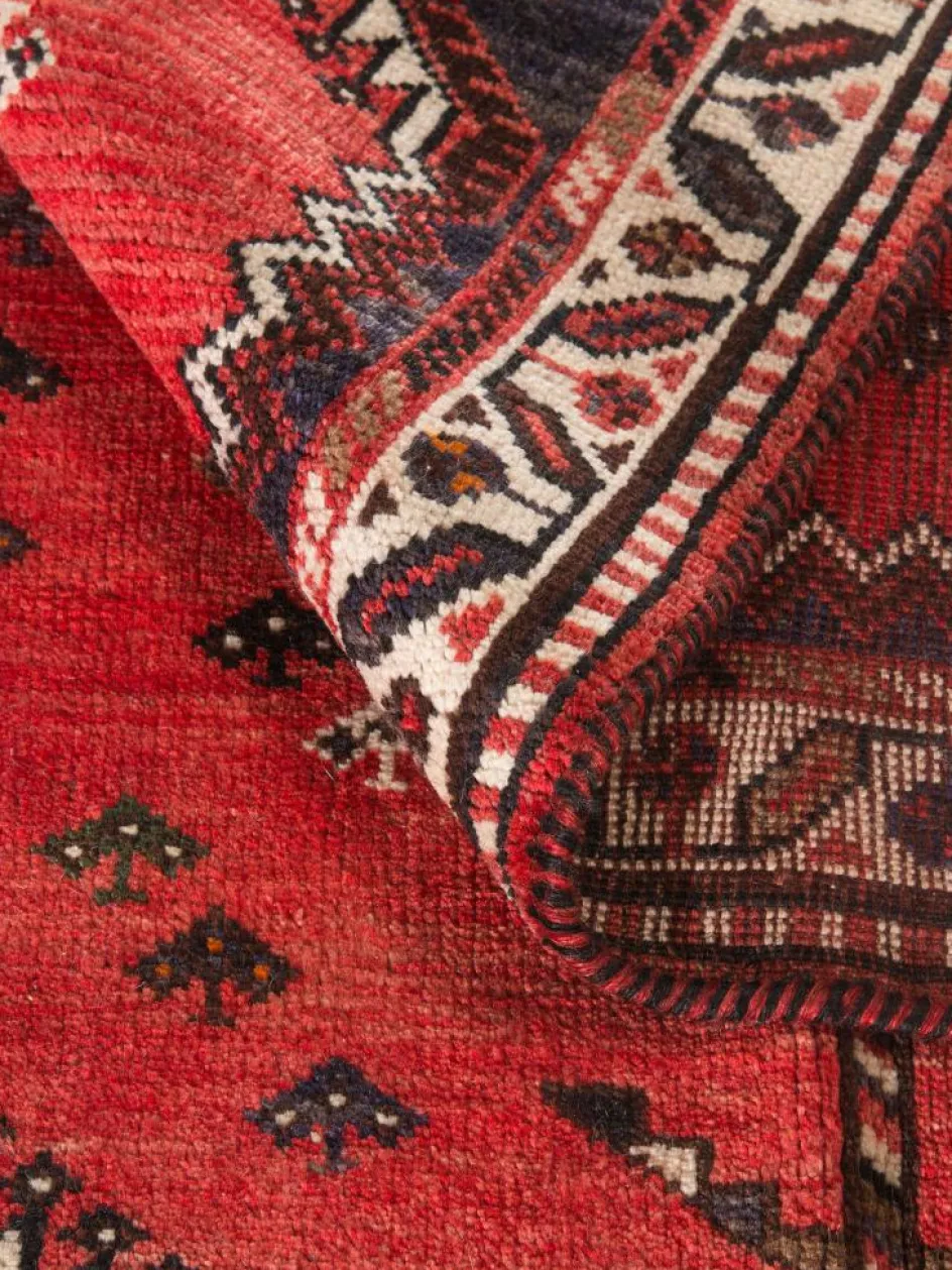 -Teppiche sind die Könige unter den Nomadenteppichen. Knüpfvorlagen gibt es bei den Ghashgai nicht. Die Knüpferinnen haben ein sehr gutes Gedächtnis. Sie brauchen ein interessantes Motiv nur einmal zu sehen oder erzählt zu bekommen. Alle Teppiche werden aus dem Gedächtnis geknüpft und sind daher nie gleich. Die Ornamente werden immer anders angeordnet oder die Farben unterscheiden sich. DasGrundgewebe