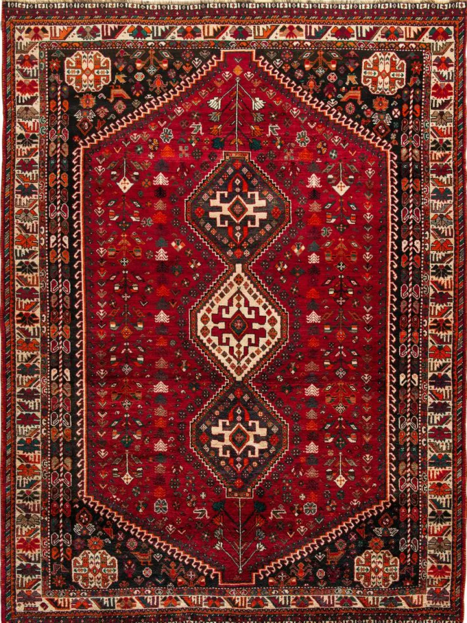 -Teppiche sind die Könige unter den Nomadenteppichen. Knüpfvorlagen gibt es bei den Ghashgai nicht. Die Knüpferinnen haben ein sehr gutes Gedächtnis. Sie brauchen ein interessantes Motiv nur einmal zu sehen oder erzählt zu bekommen. Alle Teppiche werden aus dem Gedächtnis geknüpft und sind daher nie gleich. Die Ornamente werden immer anders angeordnet oder die Farben unterscheiden sich. DasGrundgewebe