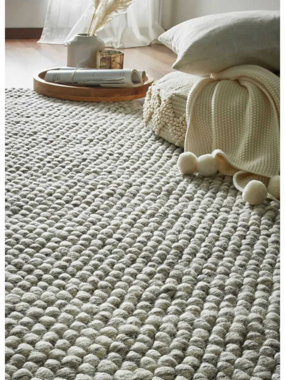 und enormer Festigkeit. Ein Naturprodukt, das außergewöhnlich schwer, belastbar und unempfindlich ist, und dennoch die Leichtigkeit eines Strandspaziergangs vermittelt. Teppiche ausSchurwolle