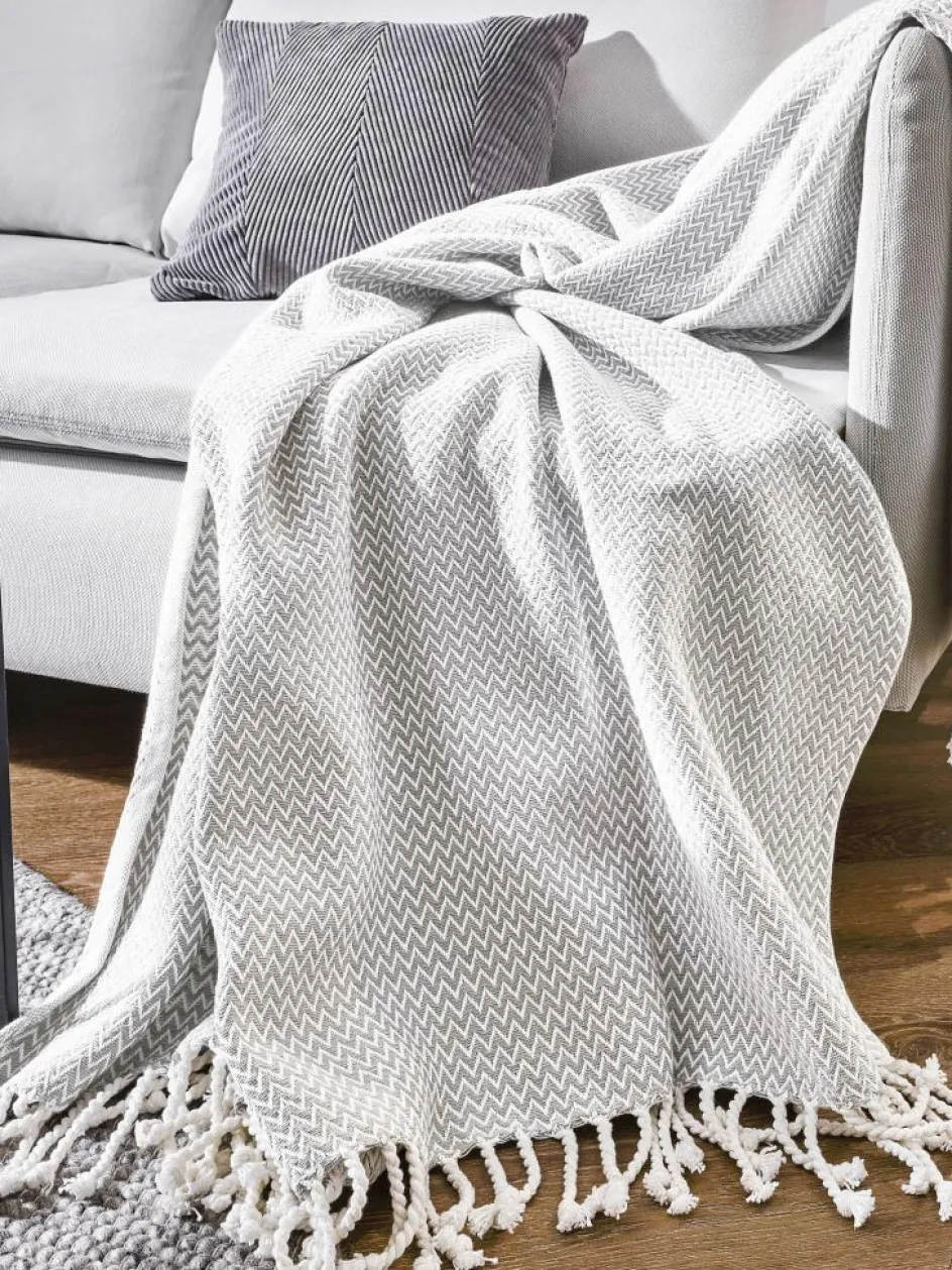 reiner Baumwolle gefertigt. Der hohe Materialeinsatz dieses feinen Jaquard-Gewebes bietet Wärme und lange Haltbarkeit. Zum pfiffigen Abschluss haben wir die JENSON-Decke mit Kordeln versehen. Oeko-Text Standard 100.