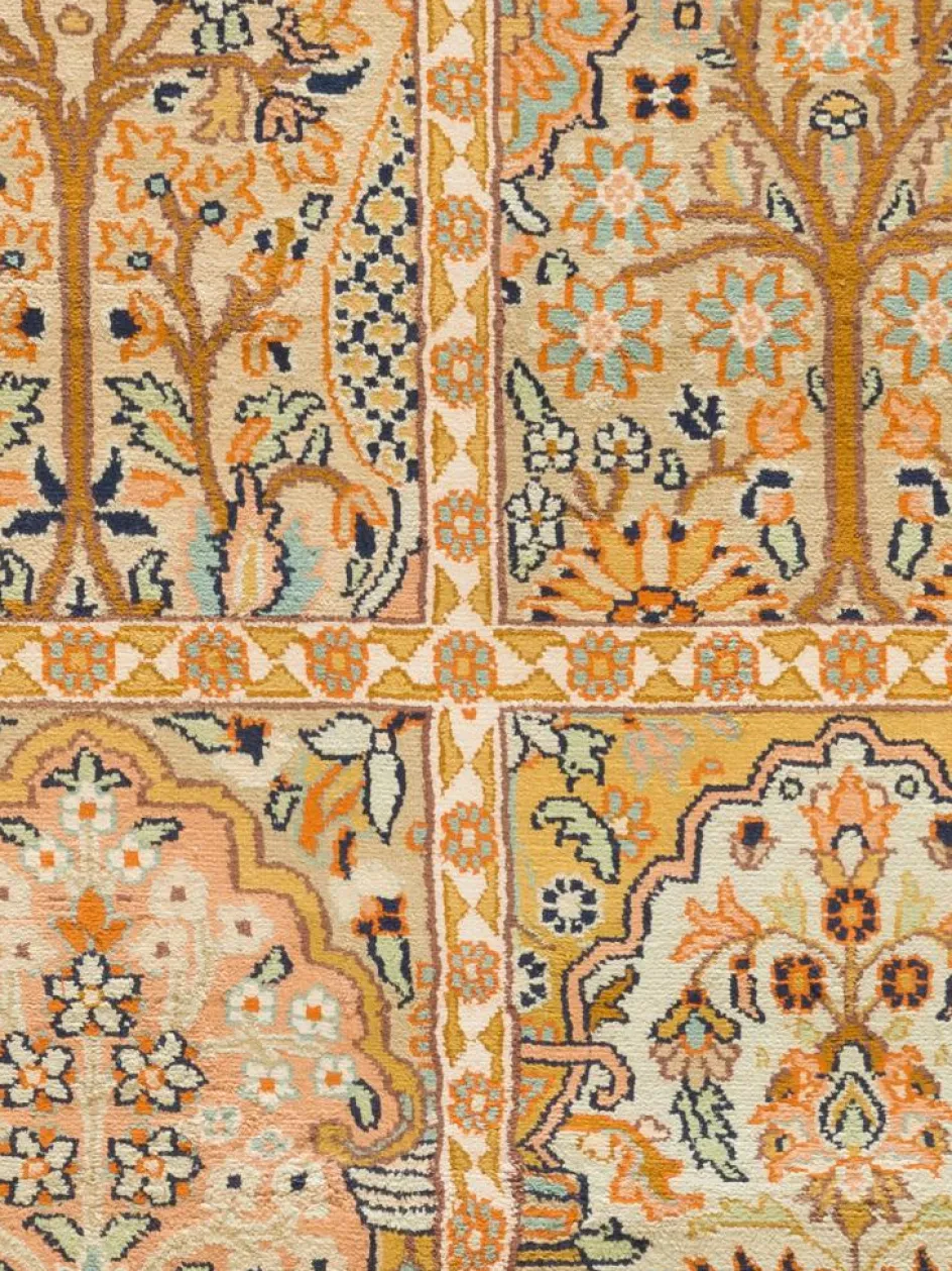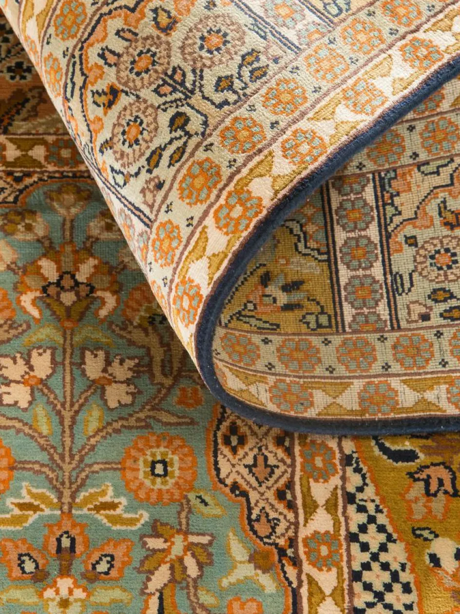 -Teppiche sind eher zurückhaltend, die Muster nach wie vor sehr stark persisch beeinflusst. Florale Motive und das persischeFeldermuster