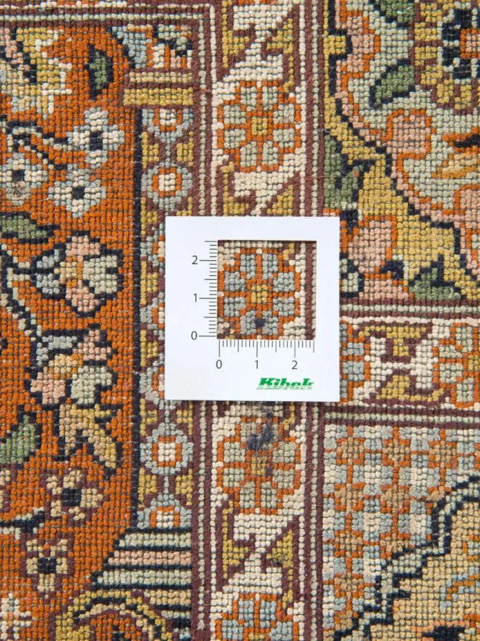 -Teppiche sind eher zurückhaltend, die Muster nach wie vor sehr stark persisch beeinflusst. Florale Motive und das persischeFeldermuster