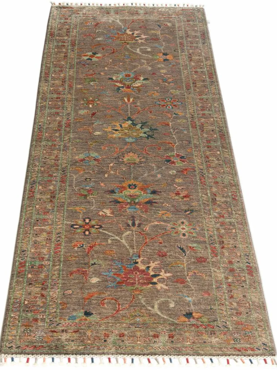 , einem klassischen Blütenmuster. Das Wort „Phool“ kommt aus der Pakistanischen Sprache Urdu und bedeutet „Blume“. Durch den flachen und festen Flor ist der Teppich unempfindlich gegenüber den Belastungen des Alltags. – Der Teppich wurde ausGhazni