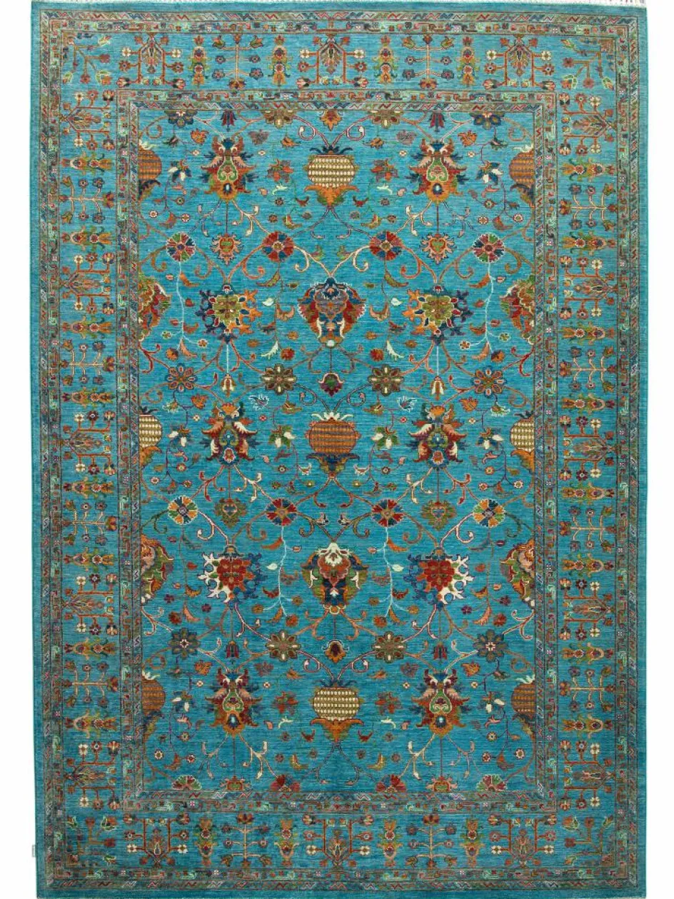 , einem klassischen Blütenmuster. Das Wort „Phool“ kommt aus der Pakistanischen Sprache Urdu und bedeutet „Blume“. Durch den flachen und festen Flor ist der Teppich unempfindlich gegenüber den Belastungen des Alltags. – Der Teppich wurde ausGhazni