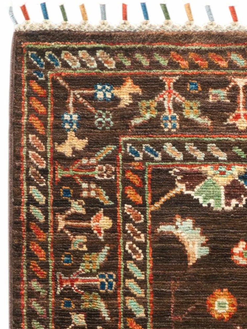 , einem klassischen Blütenmuster. Das Wort „Phool“ kommt aus der Pakistanischen Sprache Urdu und bedeutet „Blume“. Durch den flachen und festen Flor ist der Teppich unempfindlich gegenüber den Belastungen des Alltags. – Der Teppich wurde ausGhazni