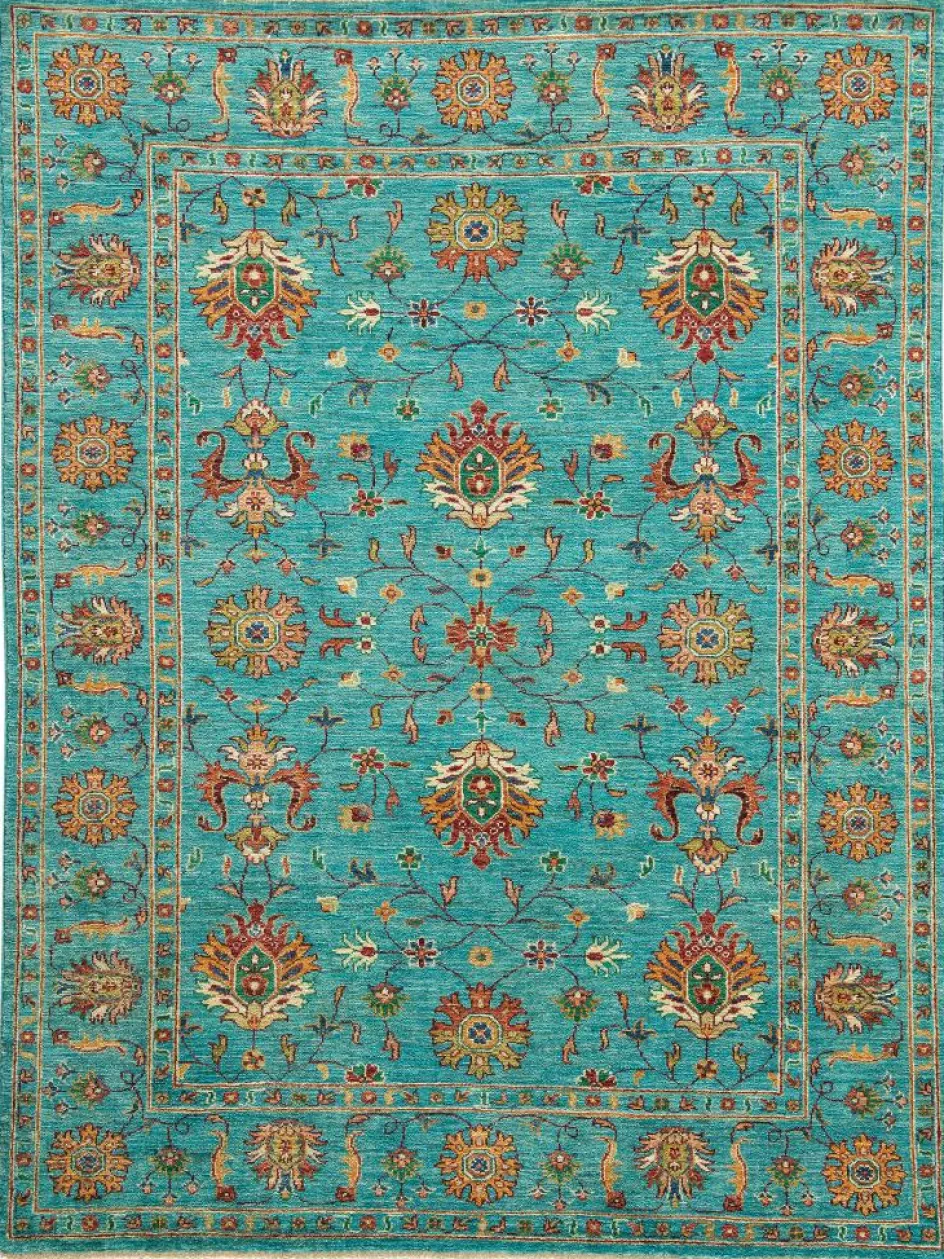 , einem klassischen Blütenmuster. Das Wort „Phool“ kommt aus der Pakistanischen Sprache Urdu und bedeutet „“Blume““. Durch den flachen und festen Flor ist der Teppich unempfindlich gegenüber den Belastungen des Alltags. – Der Teppich wurde ausGhazni