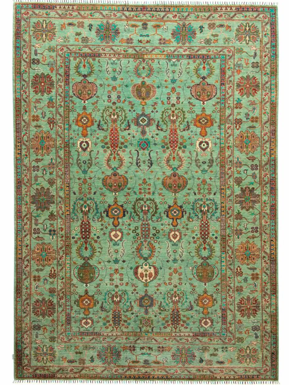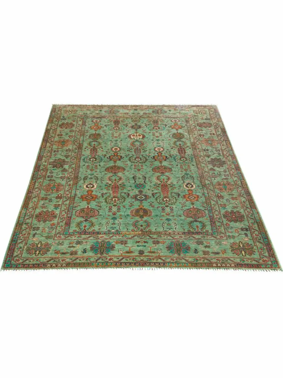 , einem klassischen Blütenmuster. Das Wort „Phool“ kommt aus der Pakistanischen Sprache Urdu und bedeutet „Blume“. Durch den flachen und festen Flor ist der Teppich unempfindlich gegenüber den Belastungen des Alltags. – Der Teppich wurde ausGhazni