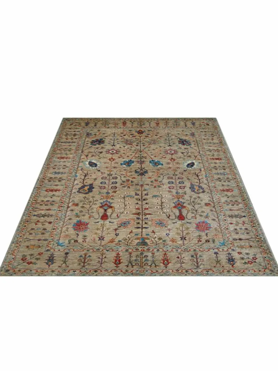 , einem klassischen Blütenmuster. Das Wort „Phool“ kommt aus der Pakistanischen Sprache Urdu und bedeutet „“Blume““. Durch den flachen und festen Flor ist der Teppich unempfindlich gegenüber den Belastungen des Alltags. – Der Teppich wurde ausGhazni
