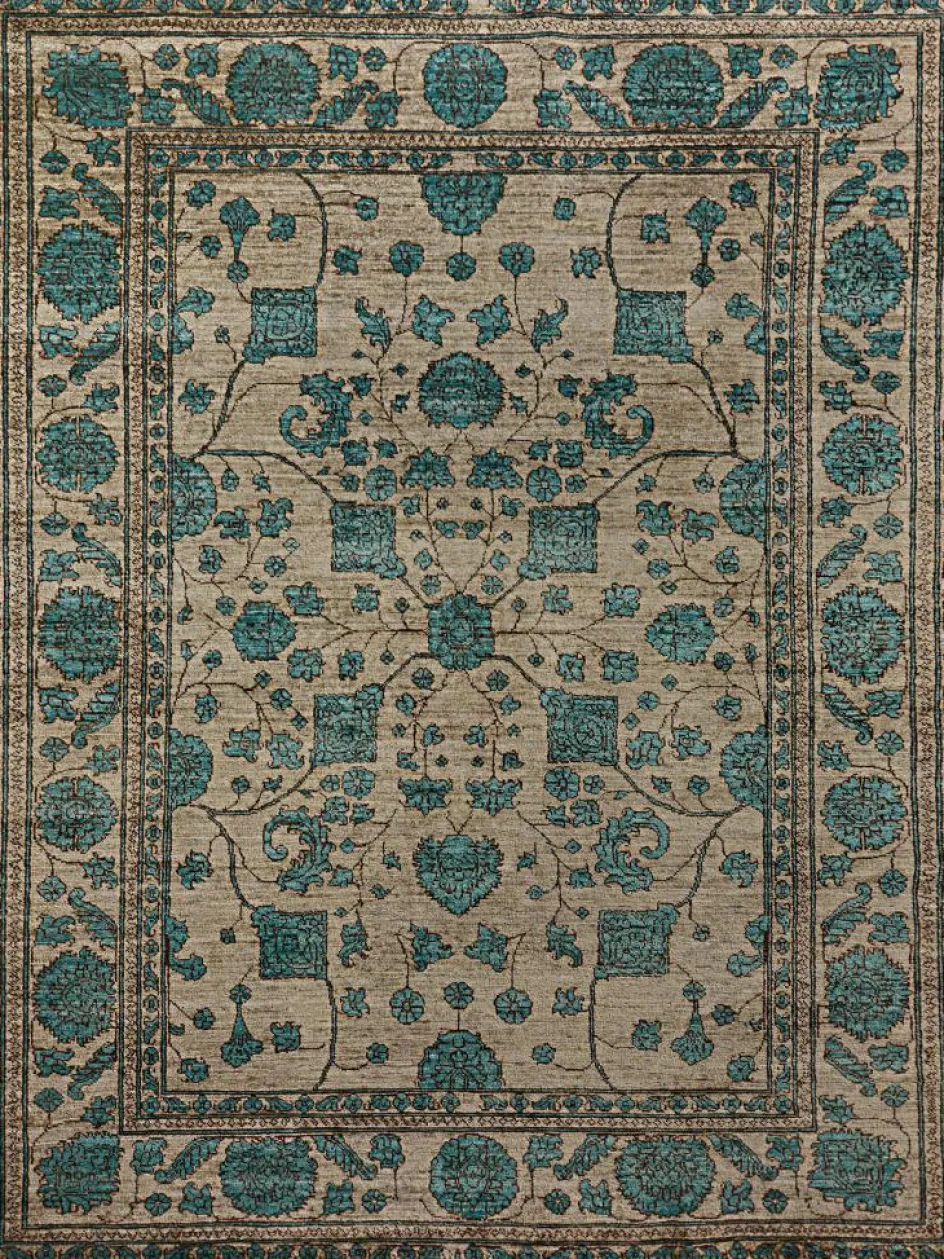 , einem klassischen Blütenmuster. Das Wort „Phool“ kommt aus der Pakistanischen Sprache Urdu und bedeutet „“Blume““. Durch den flachen und festen Flor ist der Teppich unempfindlich gegenüber den Belastungen des Alltags. – Der Teppich wurde ausGhazni