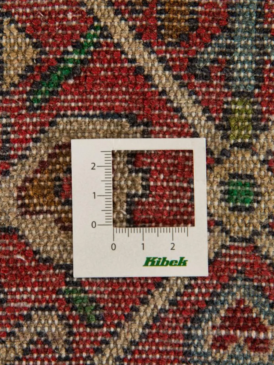 finden sich die unterschiedlichsten Dessins anderer Provenienzen, die in einer kurdentypischen Art und Weise, in völlig anderen Farben, geknüpft werden. Meist ist die Farbgebung der Teppiche eher dunkel. Der hohe Flor ist aus guter Bergschafwolle und besonders haltbar.| Gesamthöhe: | ca. 11 mm |