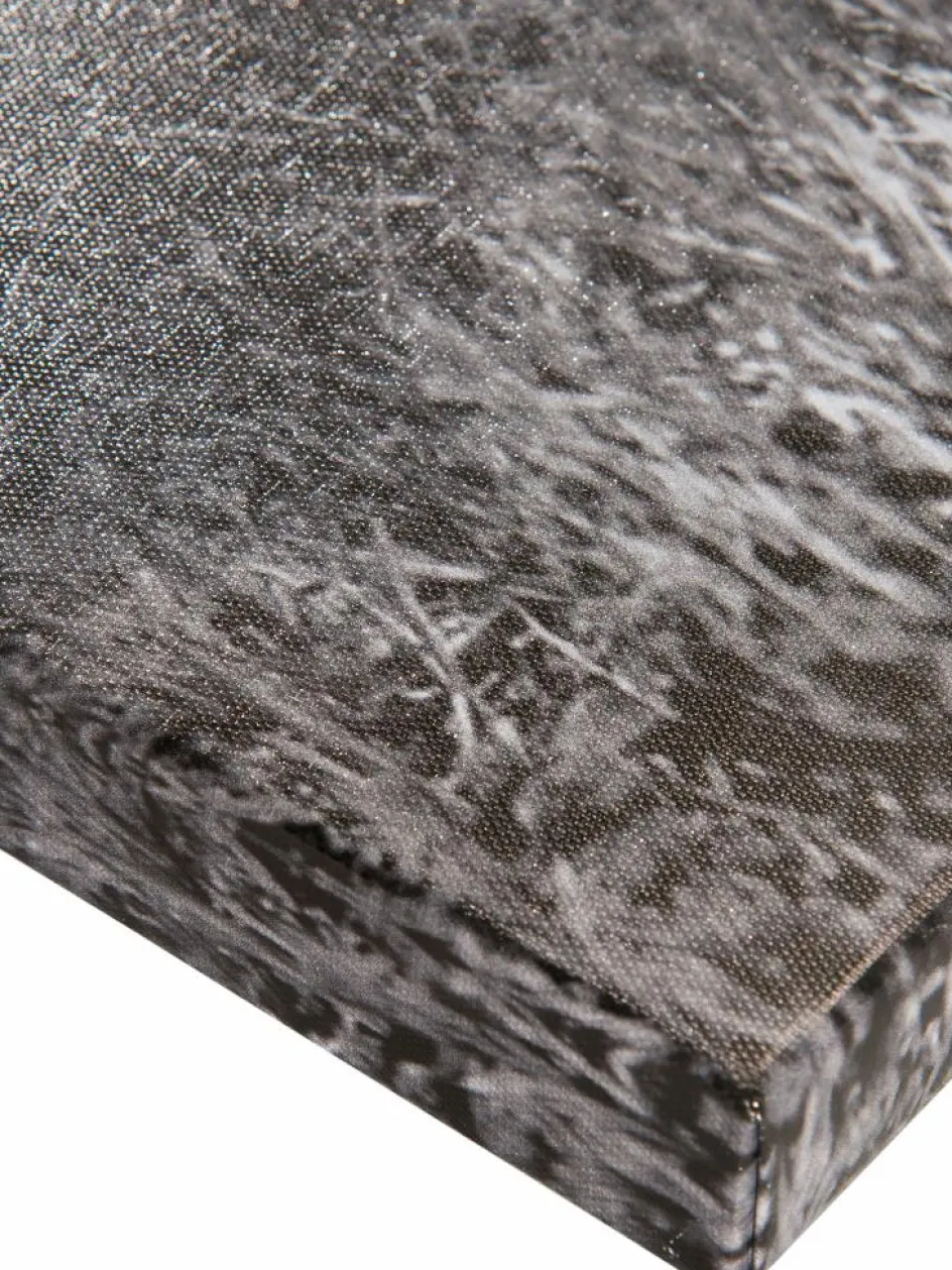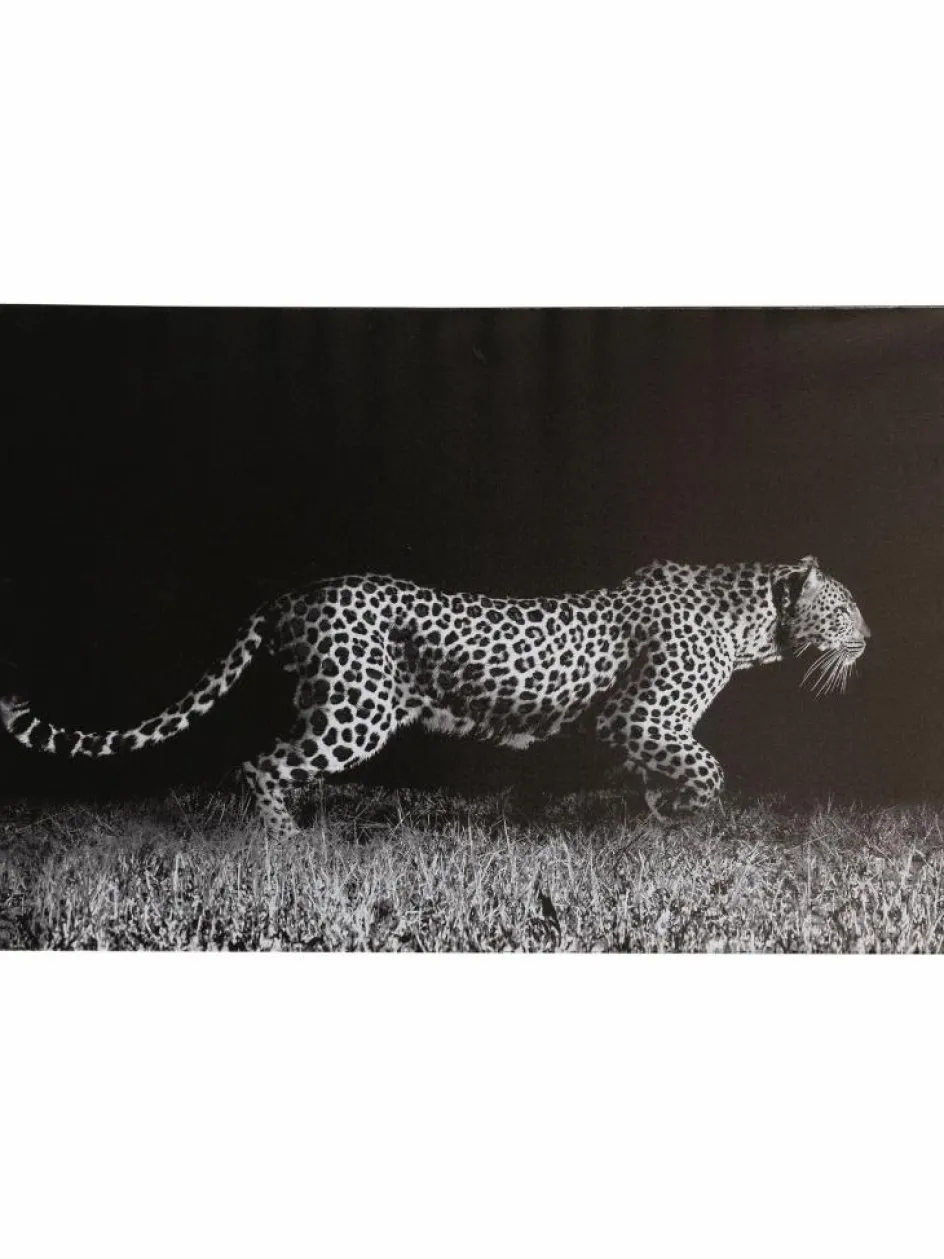 Schwarz-weißes Bild auf Leinwand. Wachsamer Leopard geht in der Dunkelheit auf die Jagd. Teilweise handbemalt.