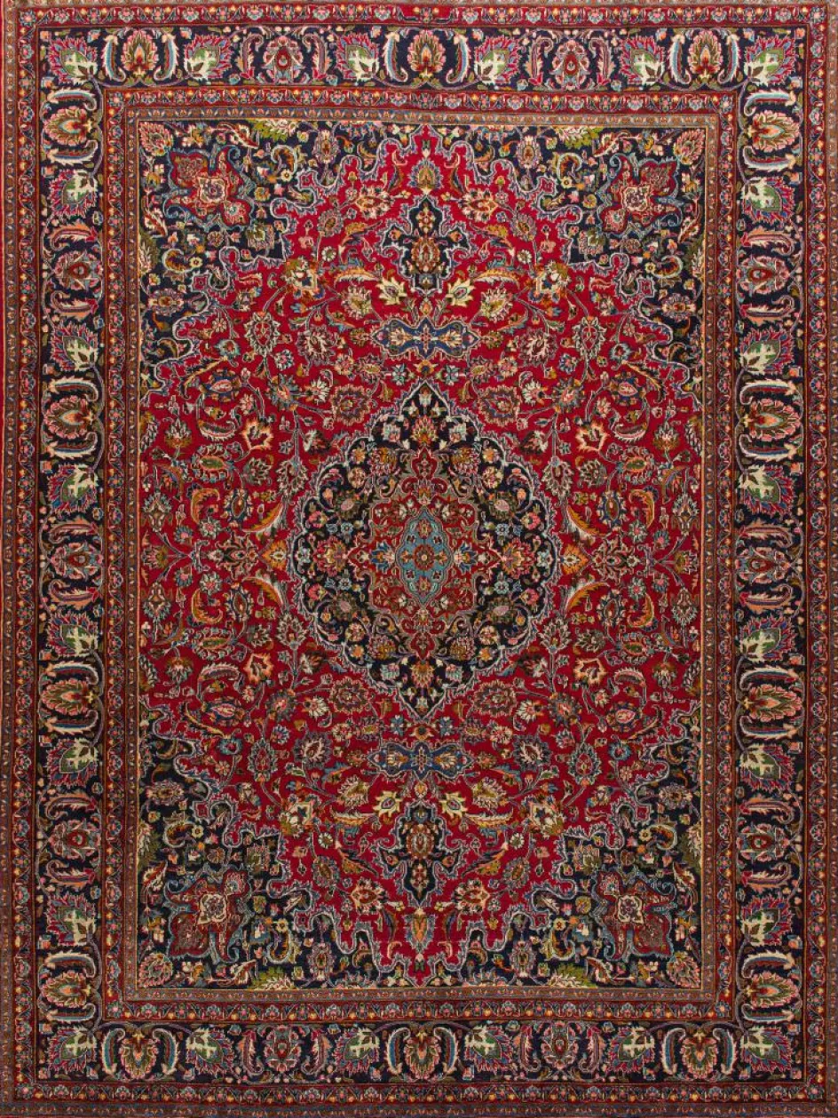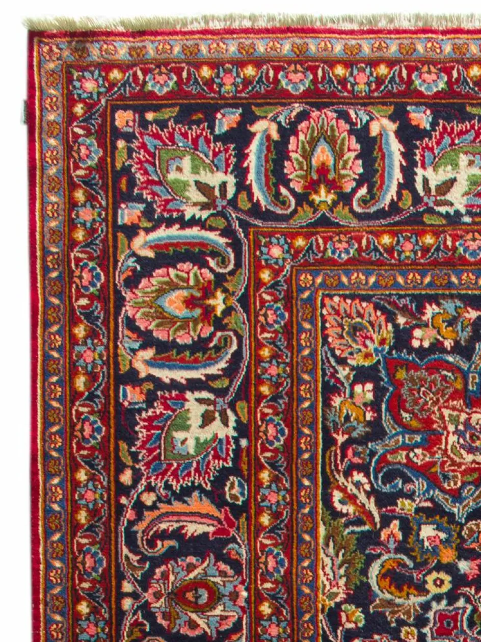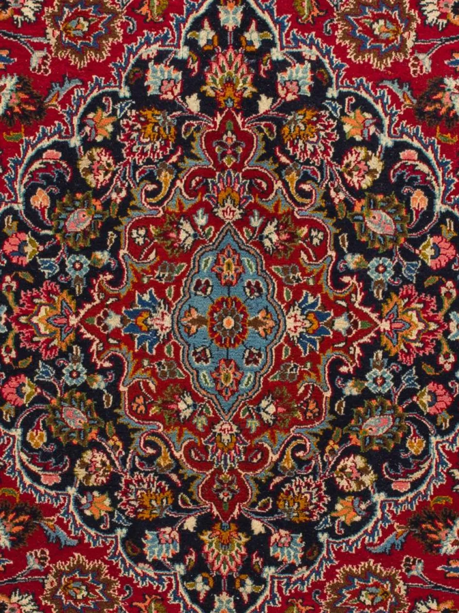 gehört zu den Hauptprovenienzen der persischen Orientteppiche.Typisch ist eine tiefrote Grundfarbe mit einer leichten Lilatönung und sehr feinen floralen Musterkompositionen mit Ranken undArabesken