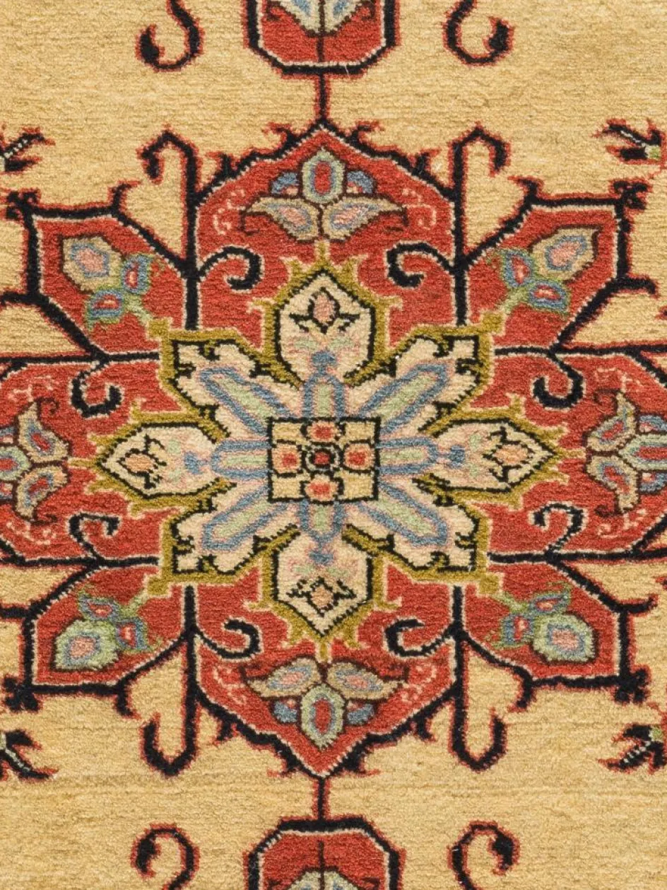 -Teppiche zeichnen sich durch den Formenreichtum sowie dem Stilisieren und Geometriesieren der traditionellen persischen Muster aus. Der Flor besteht aus guter strapazierfähigerWolle