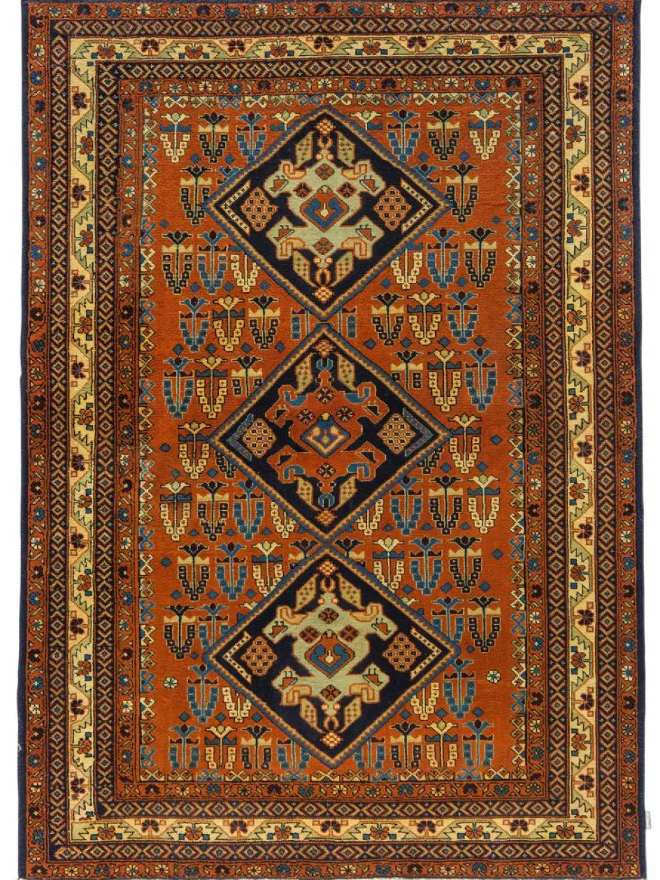 -Teppiche zeichnen sich durch den Formenreichtum sowie dem Stilisieren und Geometriesieren der traditionellen persischen Muster aus. Der Flor besteht aus guter strapazierfähigerWolle