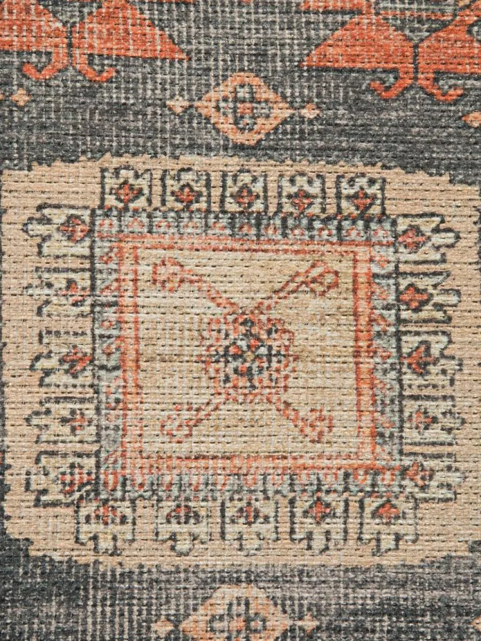 Design und seinen etwas wärmeren Farben, passt er super zum Modern Orient Trend. Er kann allerdings auch super mit anderen Dekoartikeln oder Textilien in wärmeren Farbtönen kombiniert werden. Dank seiner Zusammensetzung aus 52 % Polyester, 37 % Baumwole und 11 %Viskose