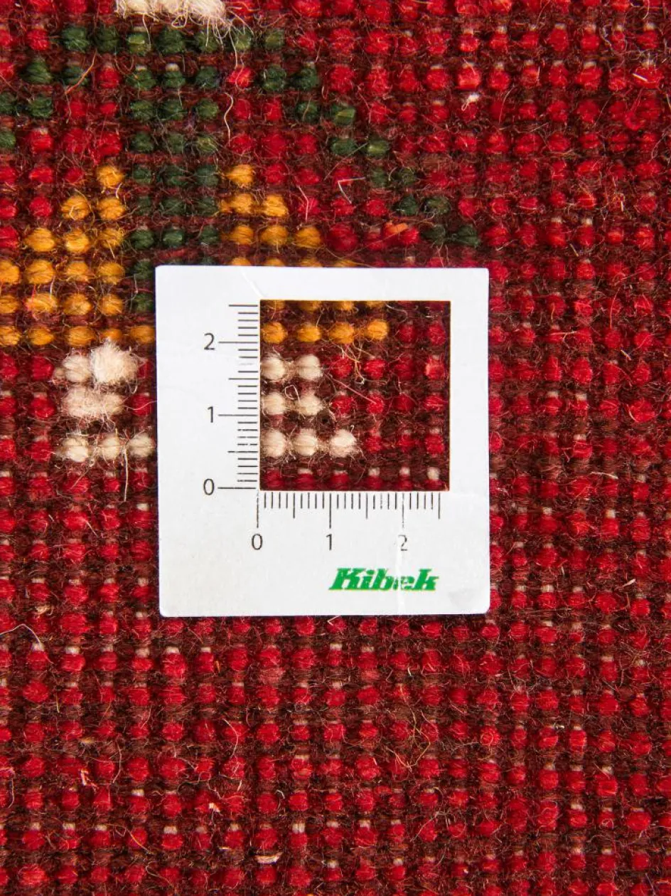 . Die Schur ist relativ hoch, der Griff fest. Die Muster sind meist schlicht oder eine Kombination mit traditionellen Mustern. Mustervorlagen gibt es nicht. Geknüpft werden alle Muster aus dem Kopf.| Gesamthöhe: | ca. 18 mm |