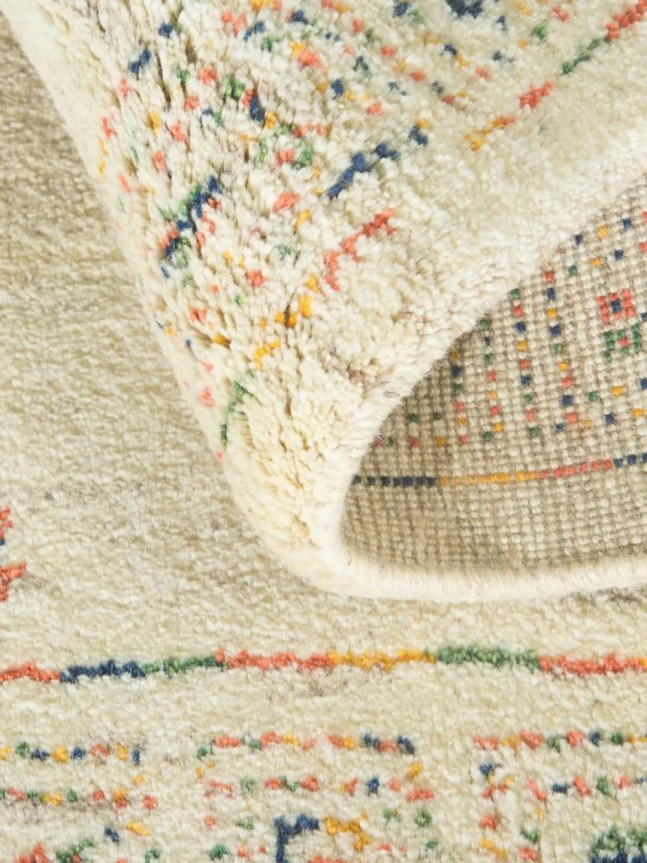 . Die Schur ist relativ hoch, der Griff fest. Die Muster sind meist schlicht oder eine Kombination mit traditionellen Mustern. Mustervorlagen gibt es nicht. Geknüpft werden alle Muster aus dem Kopf.| Gesamthöhe: | ca. 19 mm |