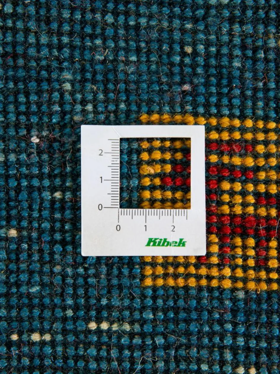 . Die Schur ist relativ hoch, der Griff fest. Die Muster sind meist schlicht oder eine Kombination mit traditionellen Mustern. Mustervorlagen gibt es nicht. Geknüpft werden alle Muster aus dem Kopf.| Gesamthöhe: | ca. 18 mm |