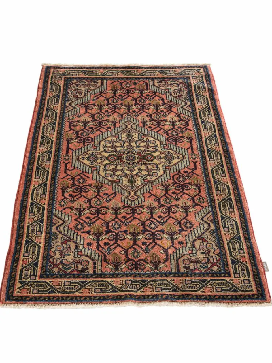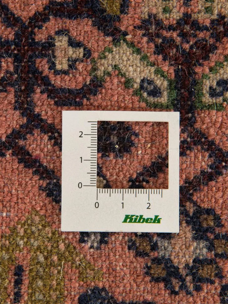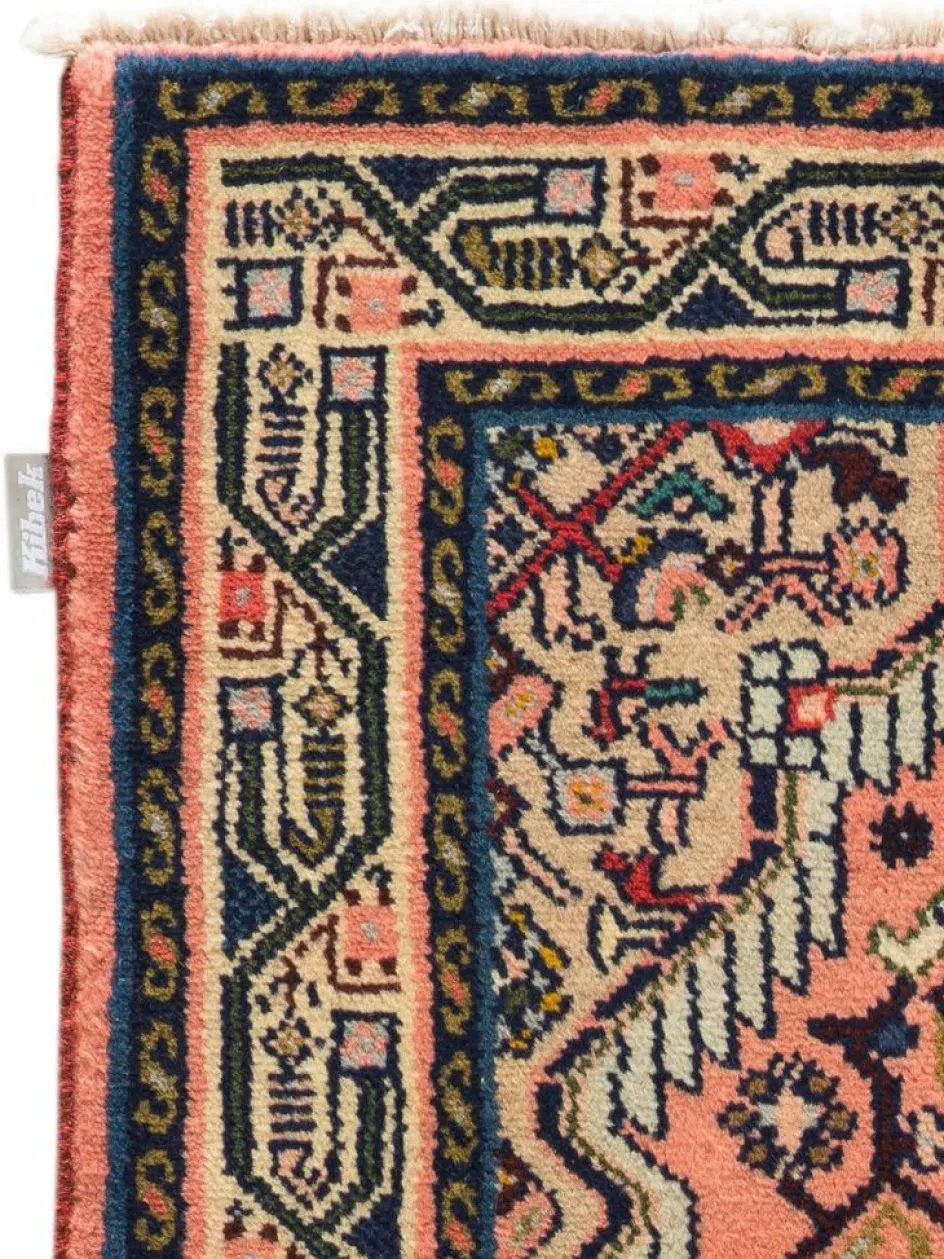 . Die Farben des Teppichs sind warm. Die Muster sind charakteristisch: Das Innenfeld ist mit einemMahi