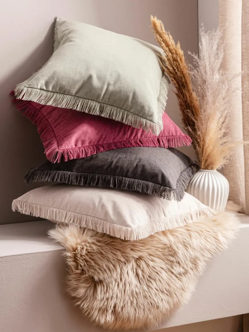 unterstreichen dabei den natürlich-lässigen Look. Gefertigt aus hochwertigen Materialien wie Baumwolle, Polyester und Leinen, punktet Zuri nicht nur mit seinem ansprechenden Design, sondern auch mit seiner Langlebigkeit und Qualität. Mit seinen Trendfarben fügt es sich nahtlos in jedes Wohnkonzept ein und verleiht jedem Zuhause eine warme und einladende Atmosphäre. Mit Füllung aus 100 % Polyester. Mit rückseitigem Reißverschluss. Ideale Ergänzung zu unserem Kissen Zahara.| Farbe: | Beere |