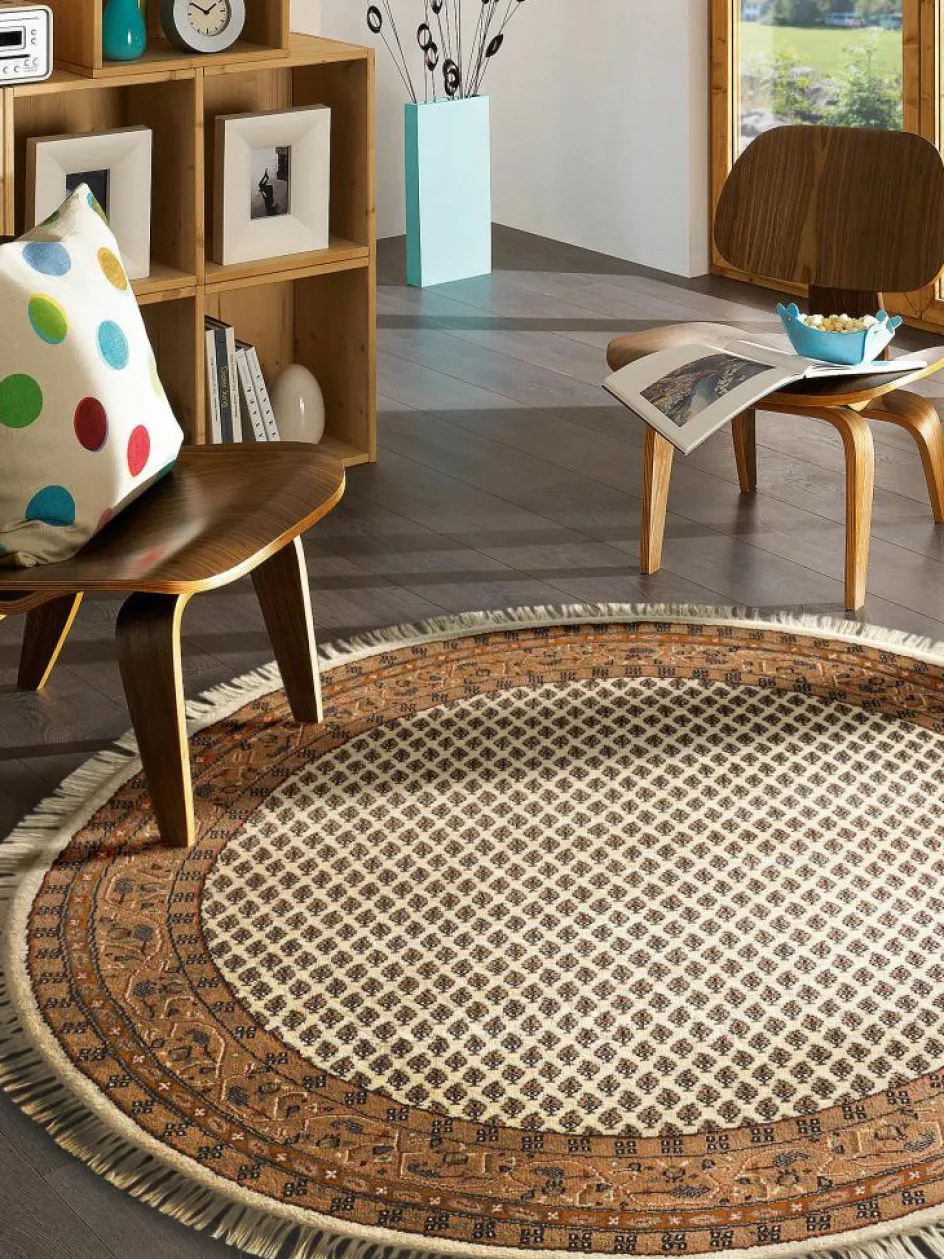-Muster, ist hier detailreich dargestellt. Allein die Knüpfarbeit von Hand kann das Muster in seiner wahren Ursprünglichkeit wiedergeben. Dieser hochwertige, edle Teppich aus Indien hat einen dichten und hohen Flor aus reinerSchurwolle